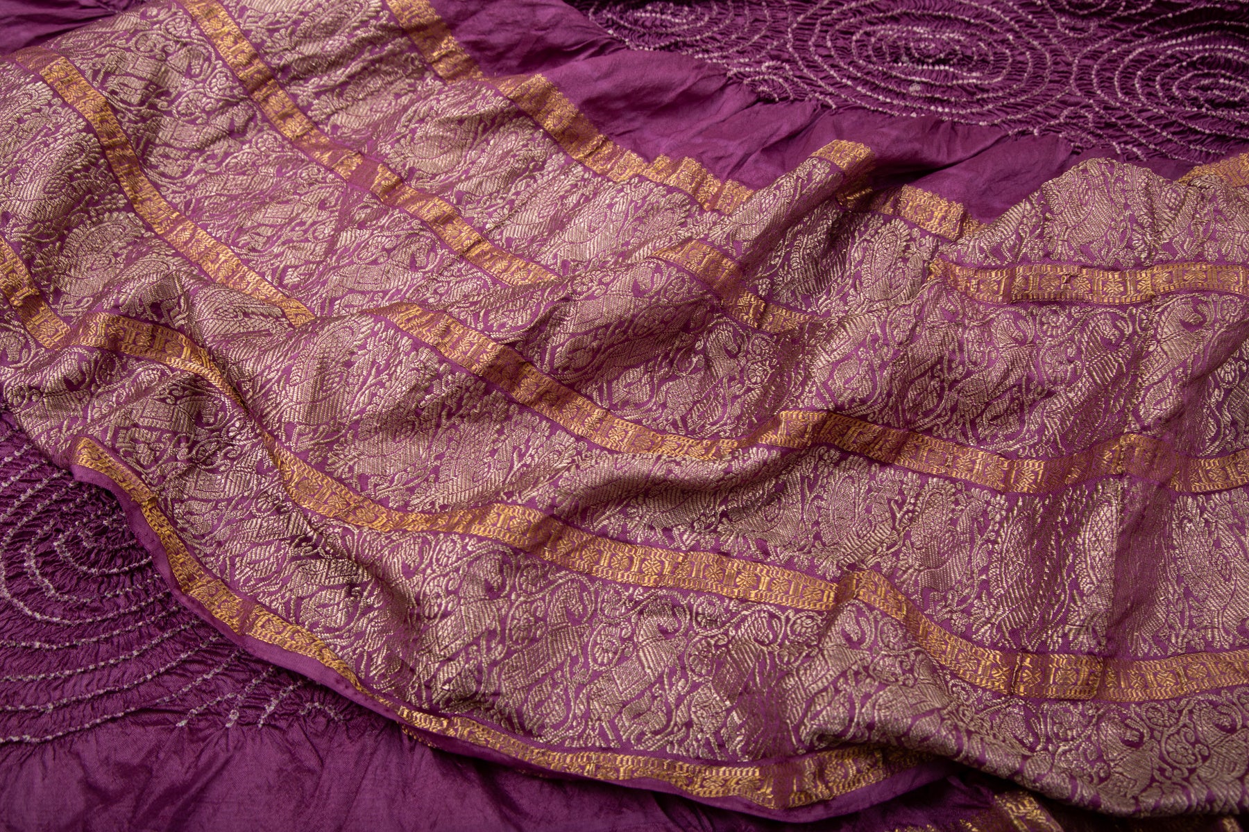 Kanchipuram Silk Bandhani Purple Saree