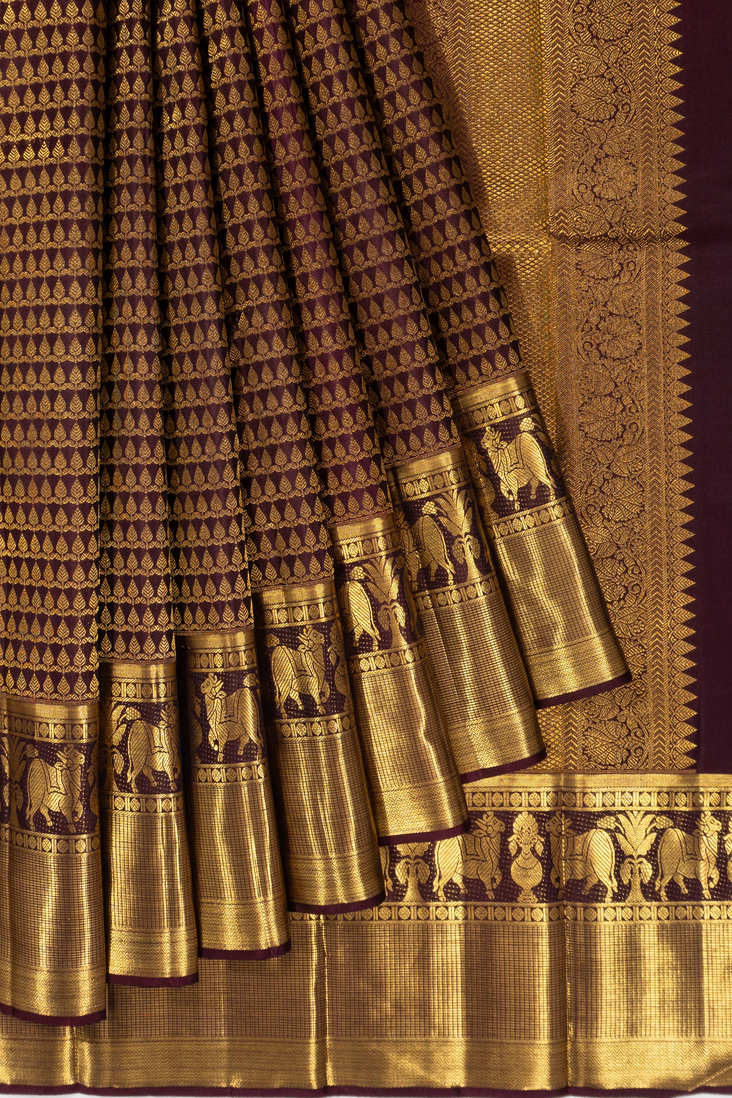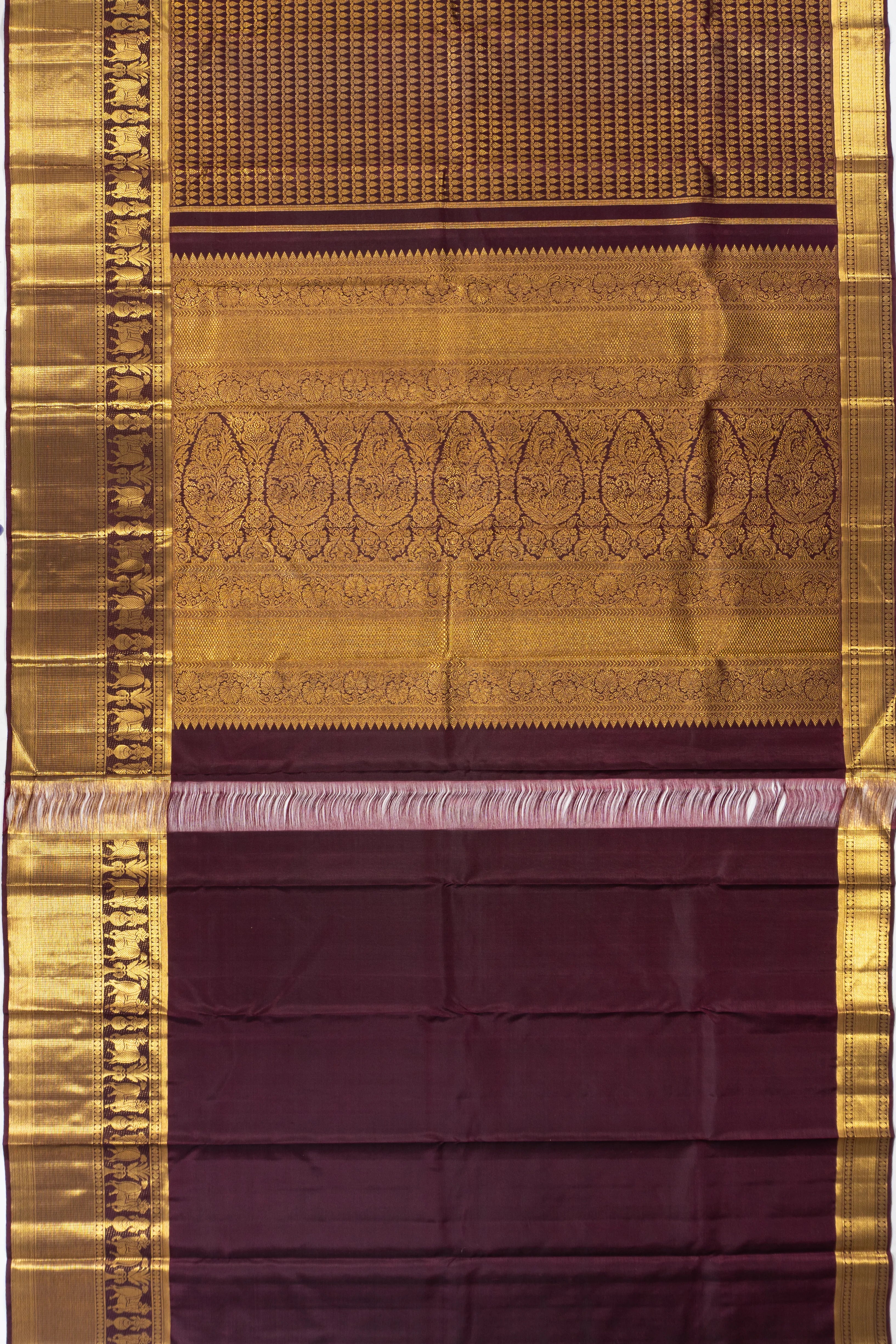 Kanchipuram Silk Brocade Brown Saree
