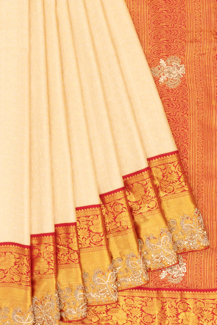 Kanchipuram Silk Brocade Cream Saree With Zardosi Work Border