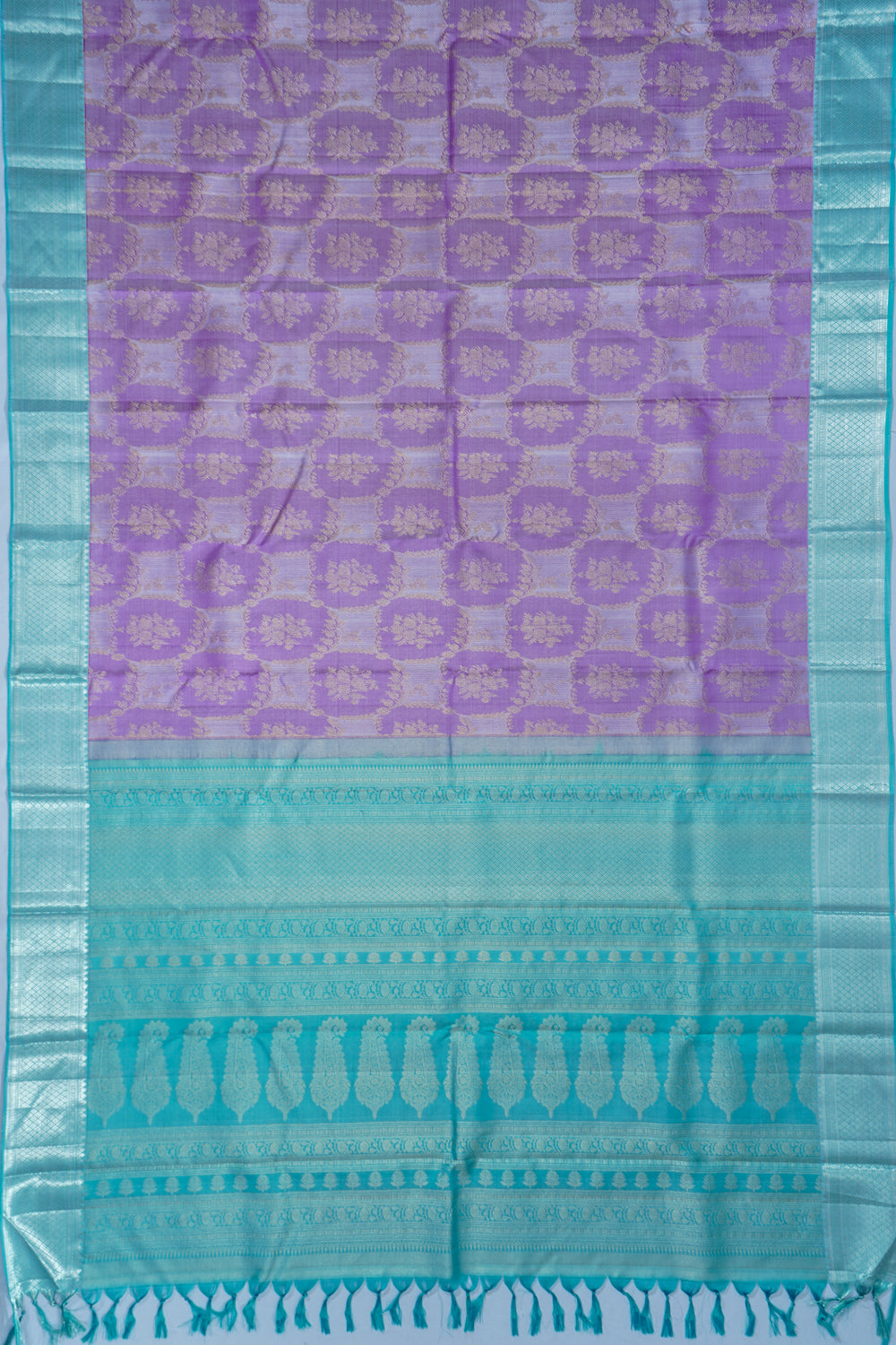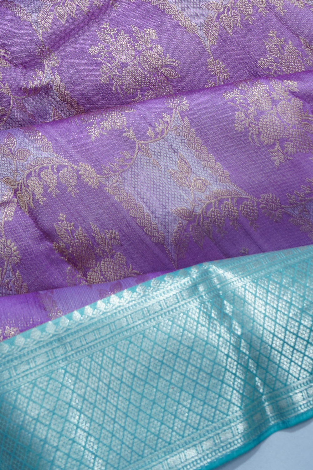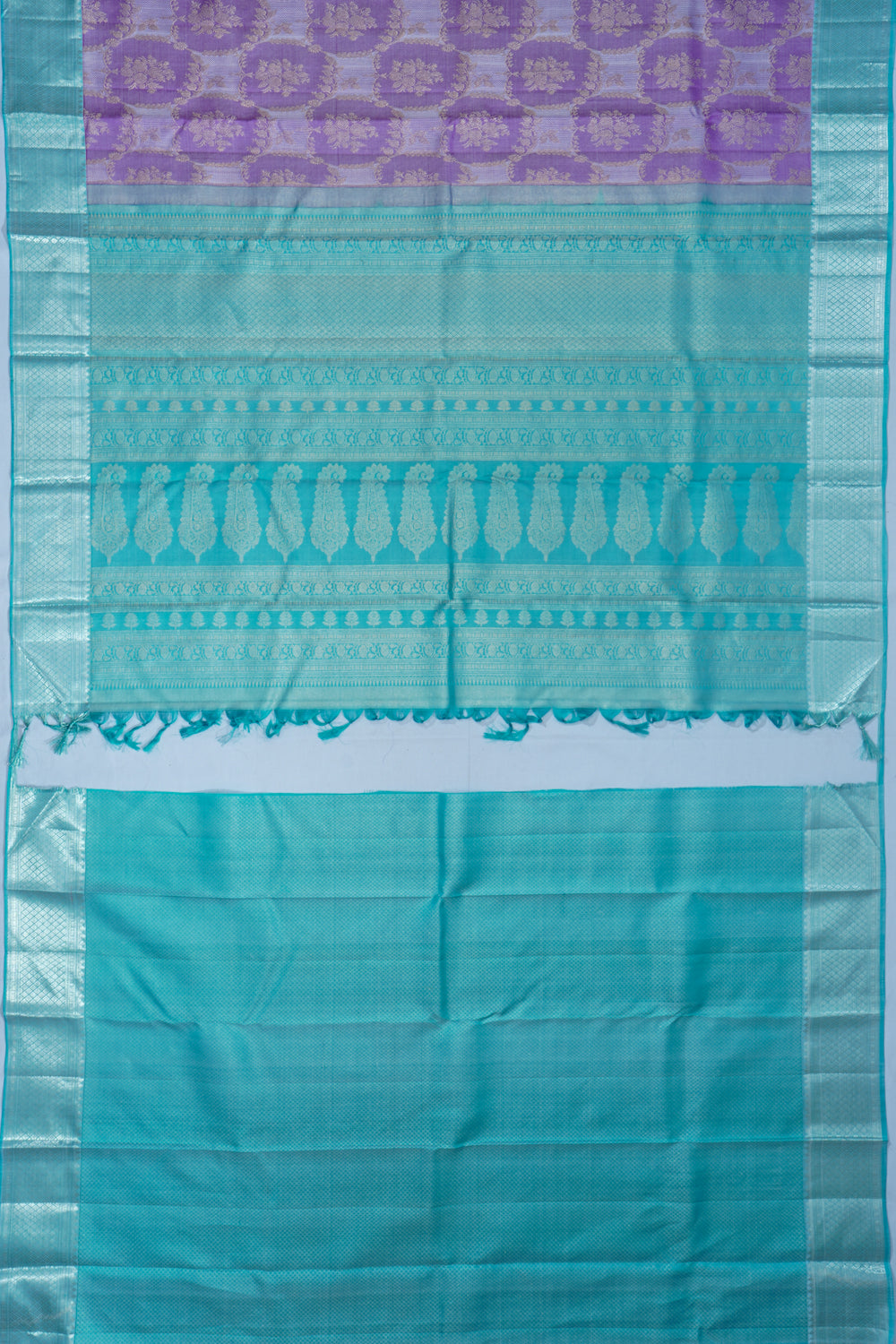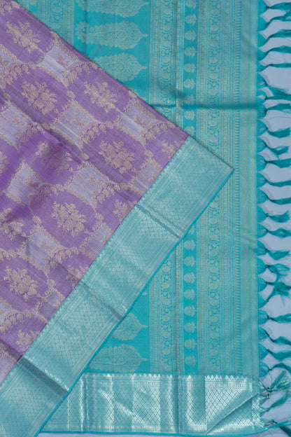 Contrast silver zari paisley floral brocade pallu, maintaining elegance.