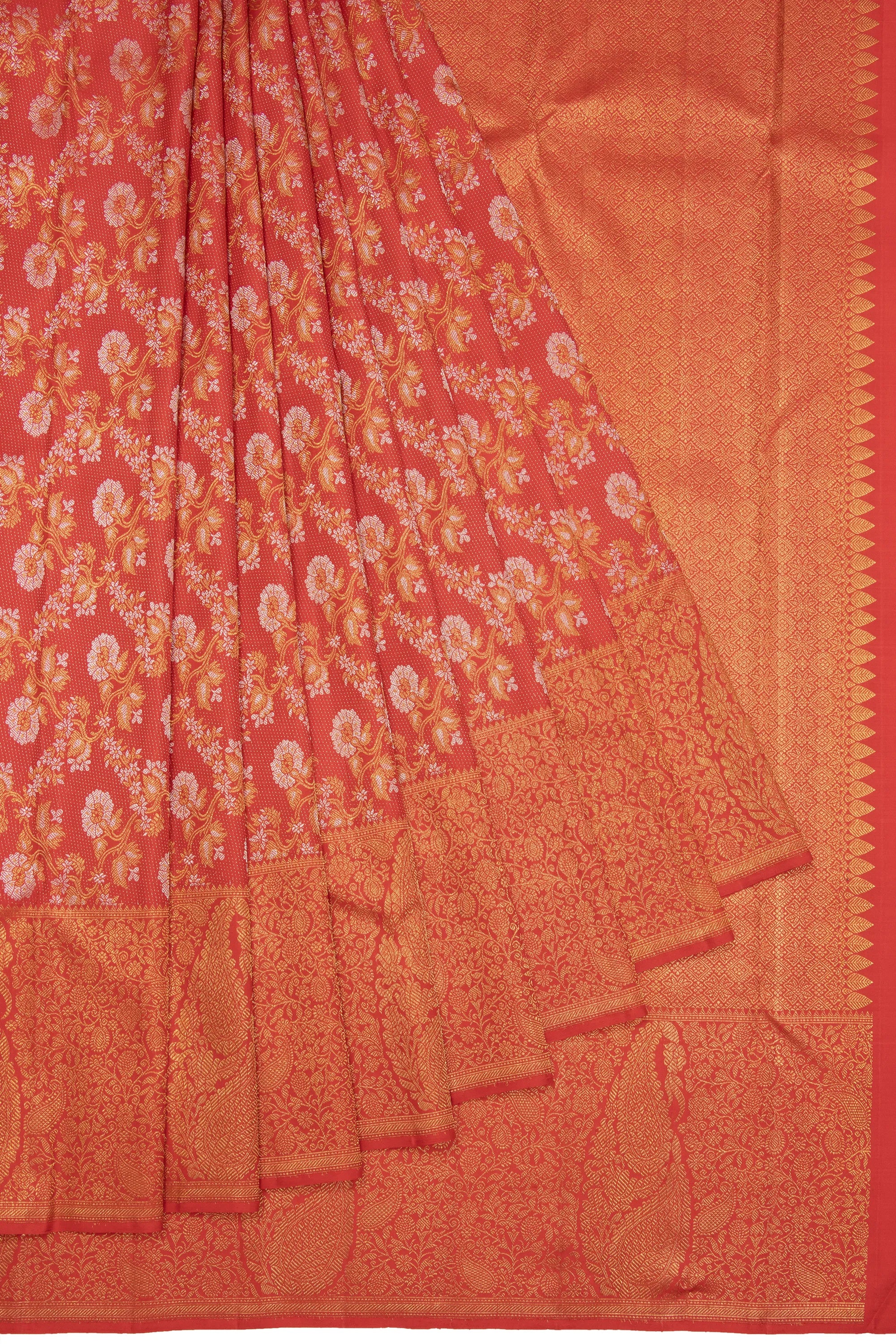 Self gold zari floral brocade pallu that complements the body with detailed floral patterns, adding depth and elegance.