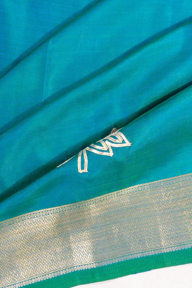 Self gold zari kaddi pallu embellished with floral patterns that maintain the saree’s graceful rhythm.