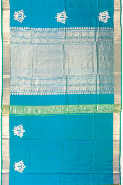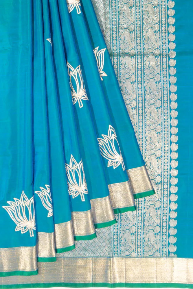 Kanchipuram Silk Butta Blue Saree With Gota Patti Work