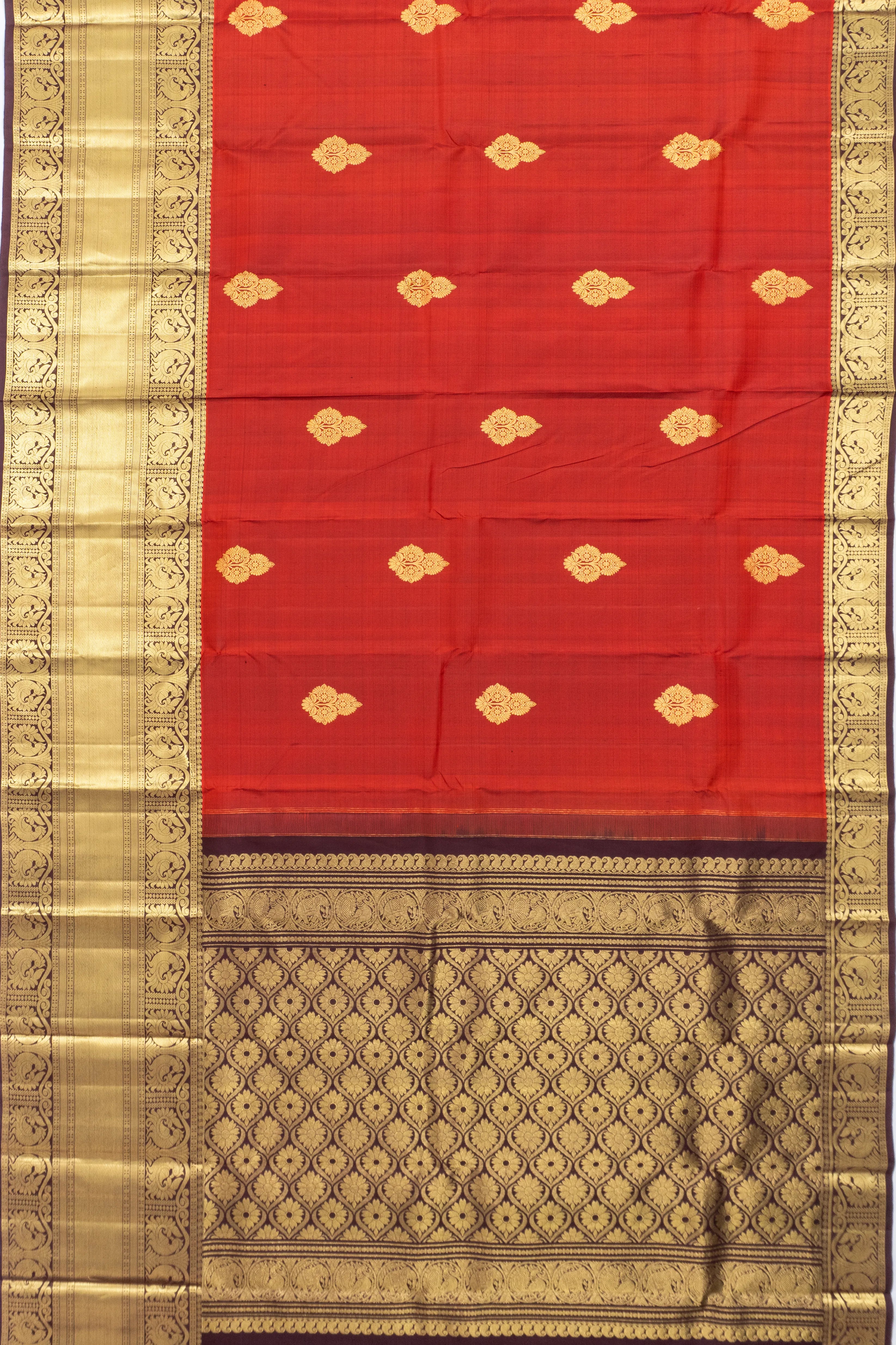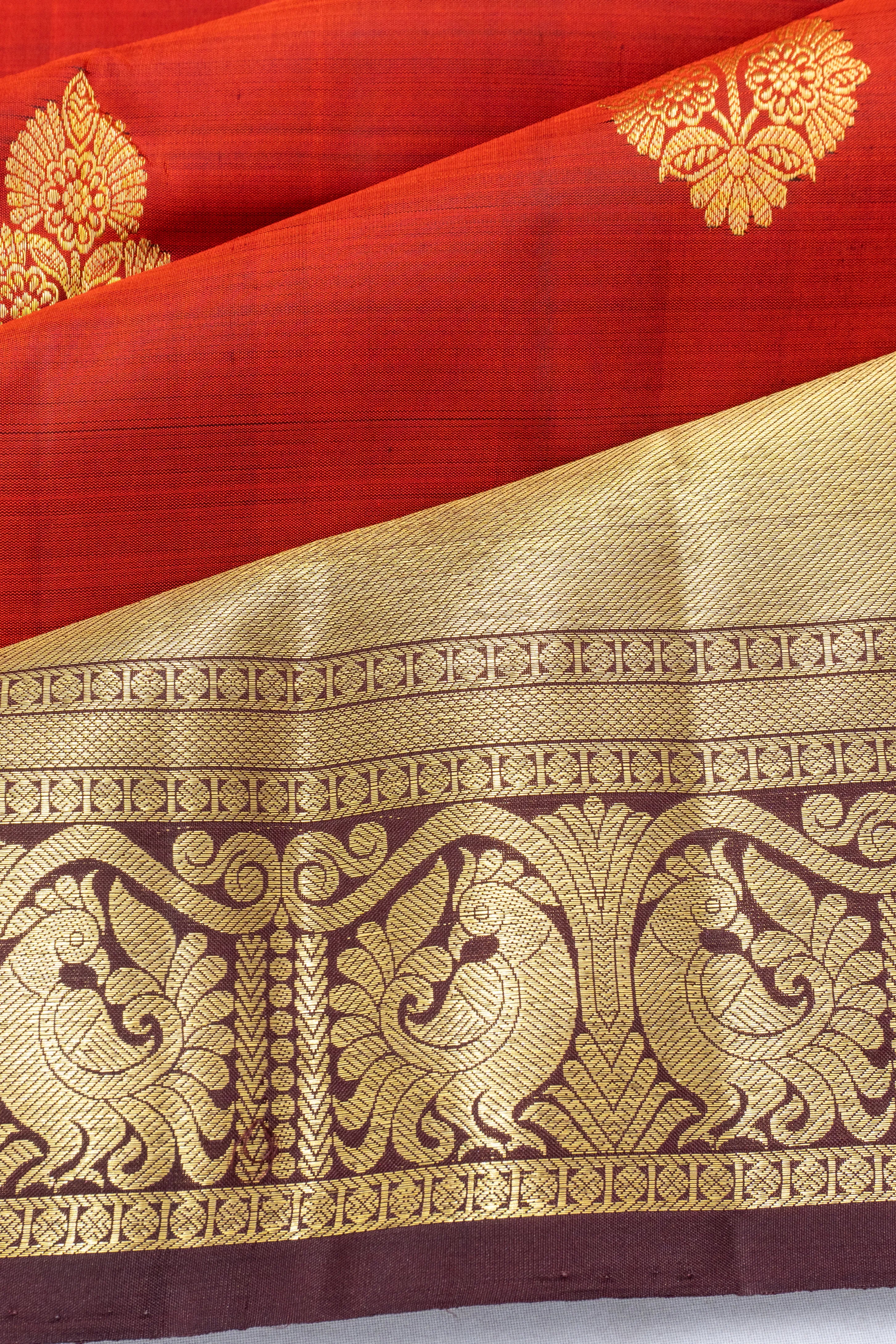 Kanchipuram Silk Butta Rust Orange Saree