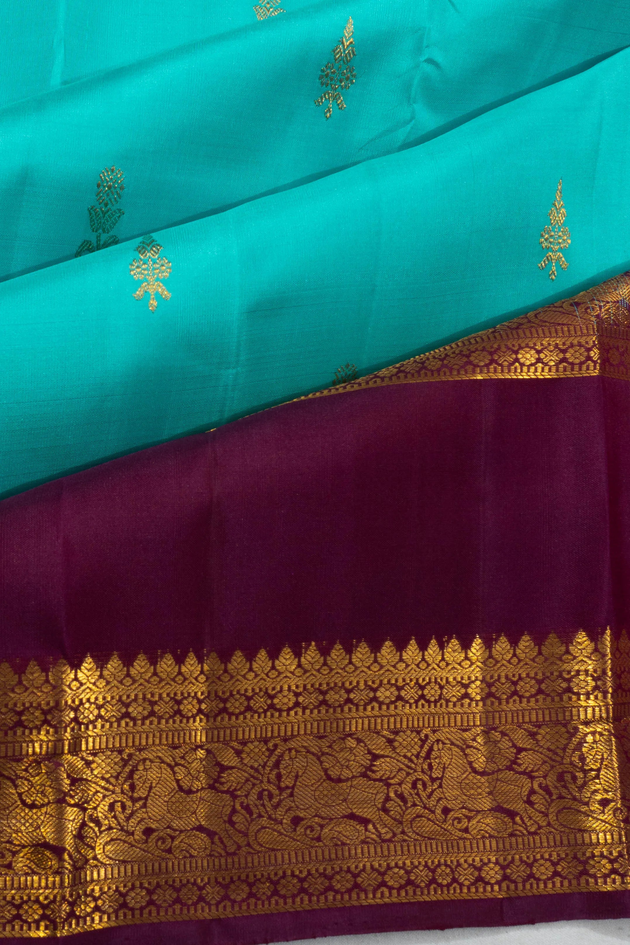 The pallu echoes this luxury with an intricate gold zari floral brocade, beautifully complemented by horse motifs nestled in floral vines
