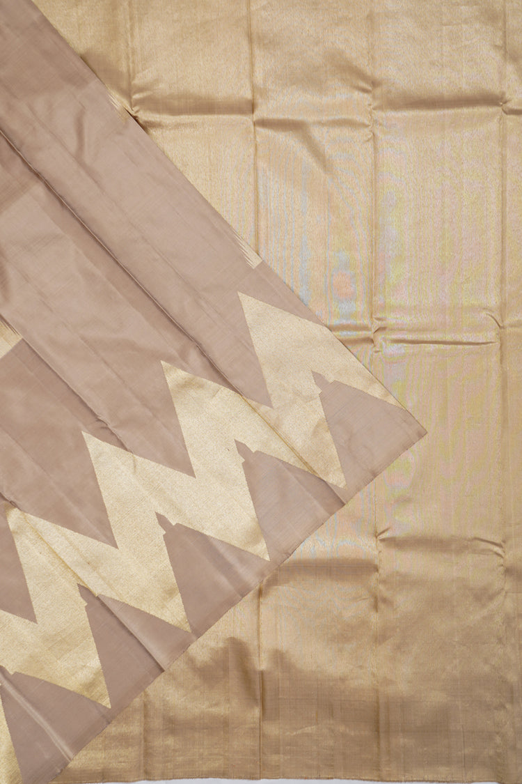 This elegant saree features a stunning gold zari geometrical triangle butta, adding a modern yet traditional touch.