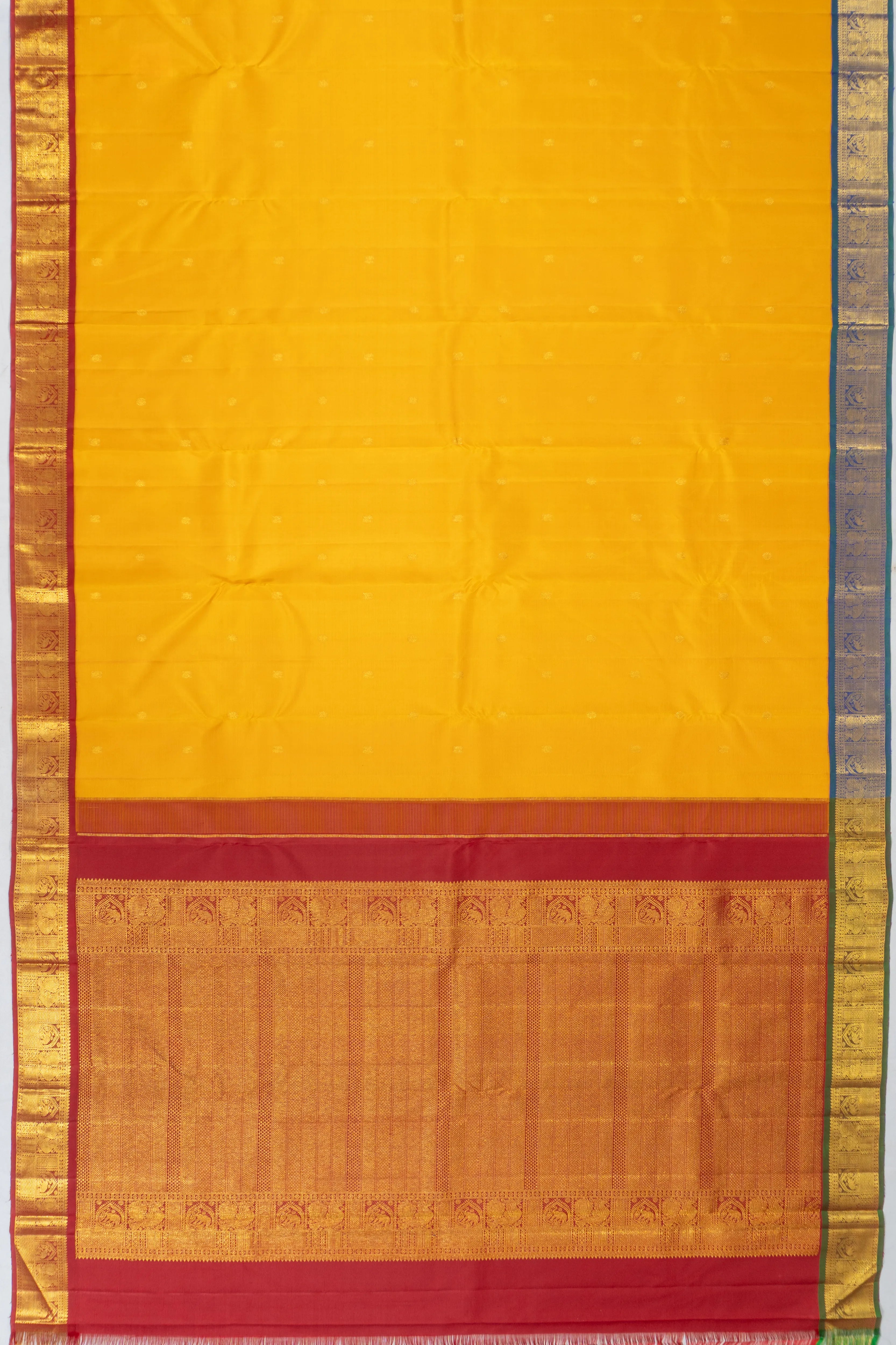 Kanchipuram Silk Butta Yellow Saree With Ganga Jamuna Border