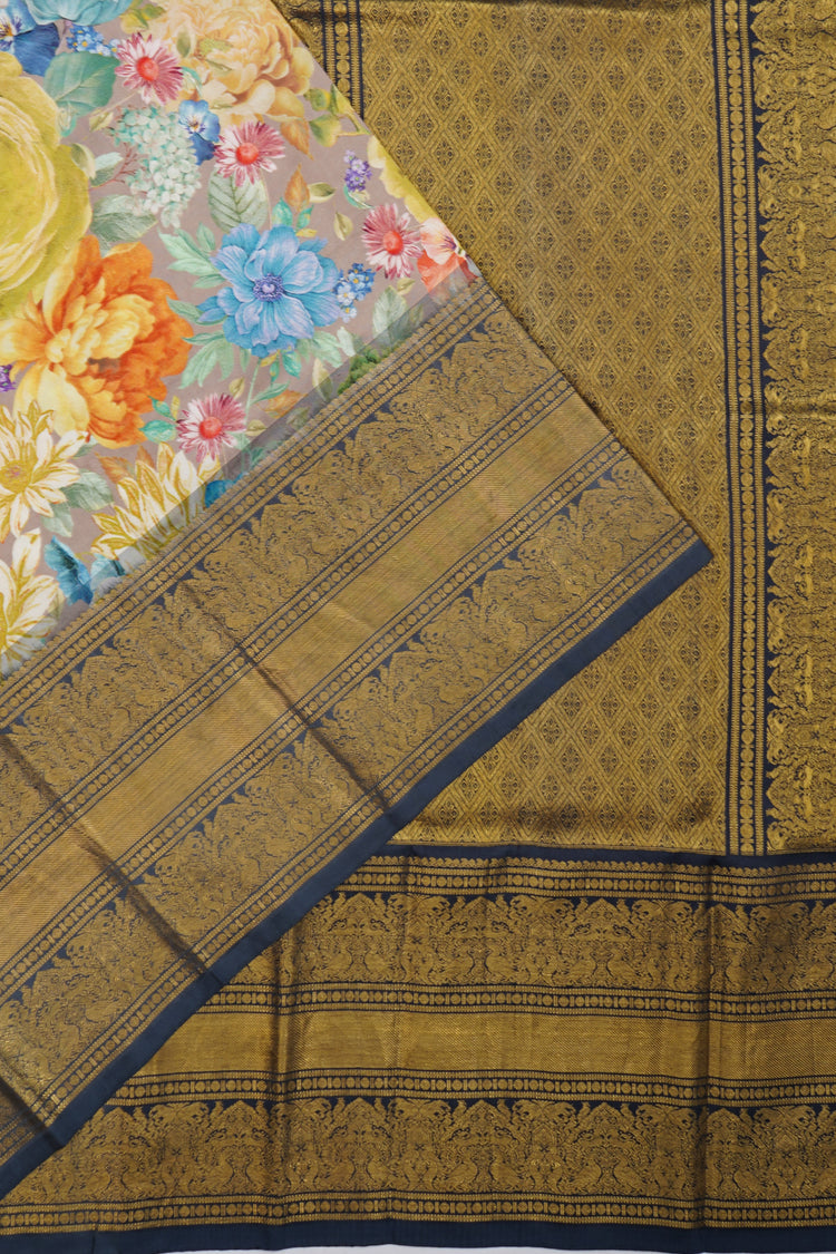 Body: This exquisite grey saree features intricate floral prints that create a soft and feminine appeal, making it perfect for various occasions.
