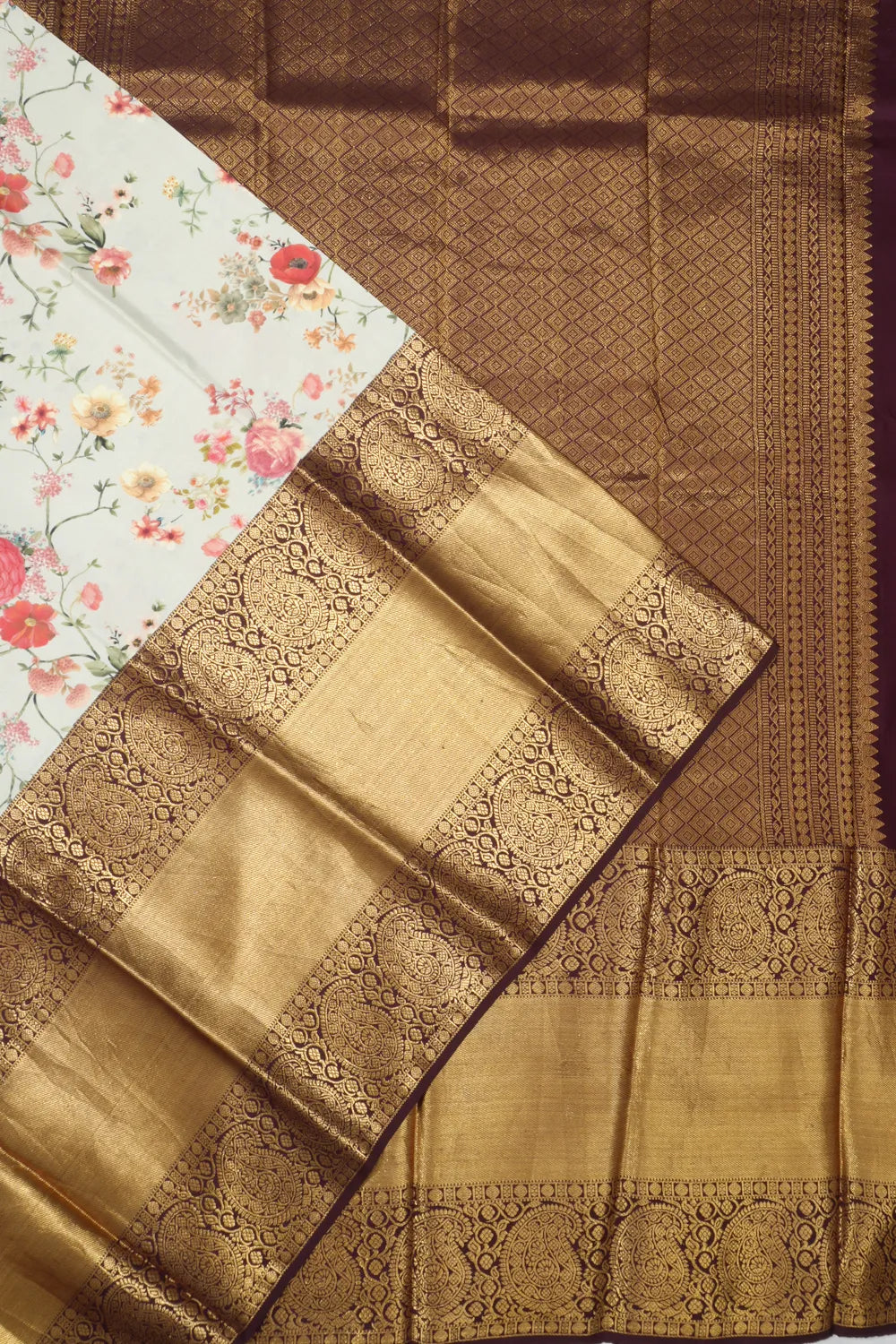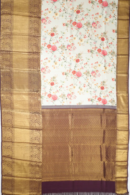 Kanchipuram Silk Floral Printed Pastel Green Saree
