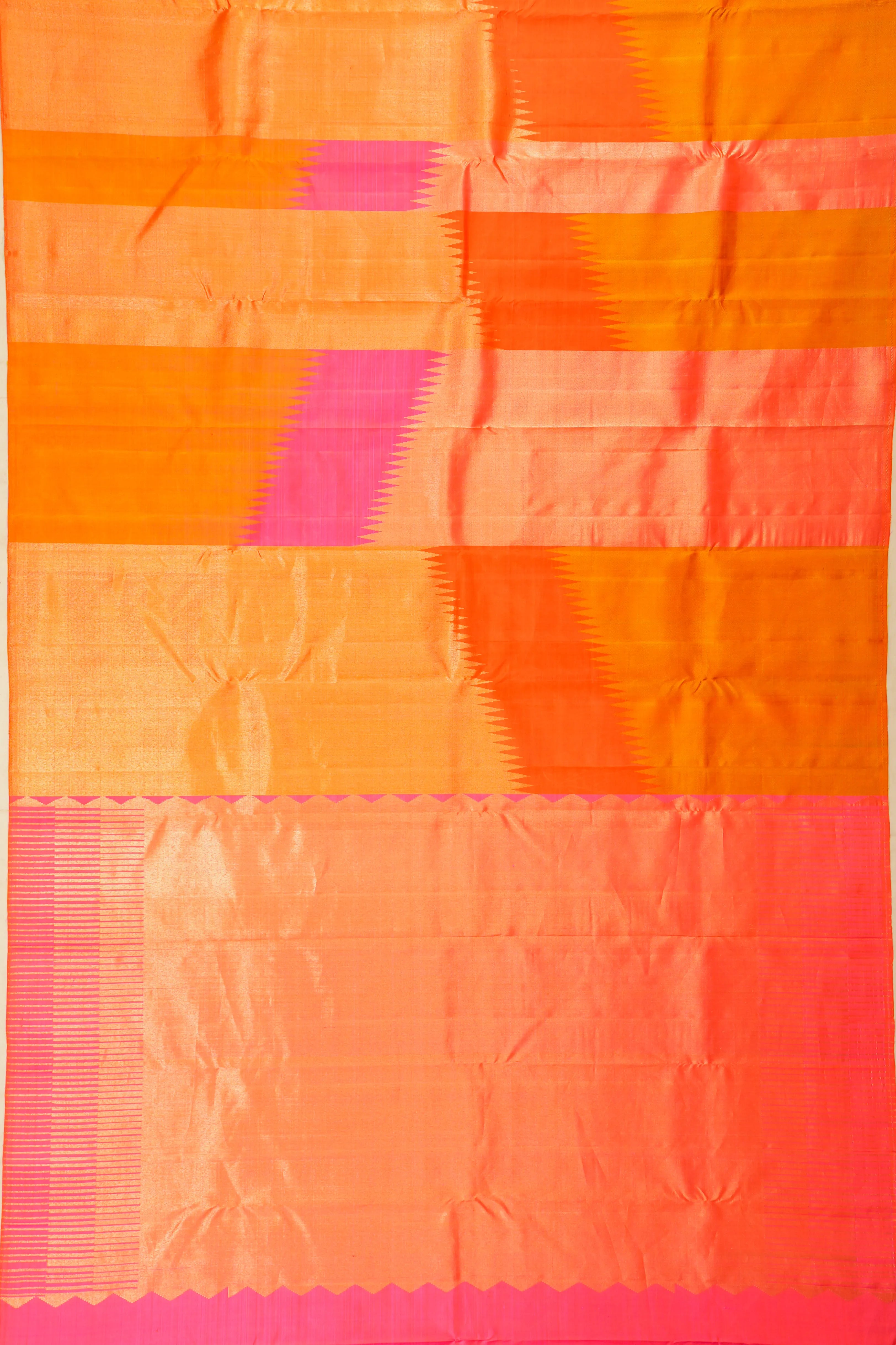 Bold and borderless — the saree comes without a border, allowing the intricately woven body to flow uninterrupted in visual symmetry.