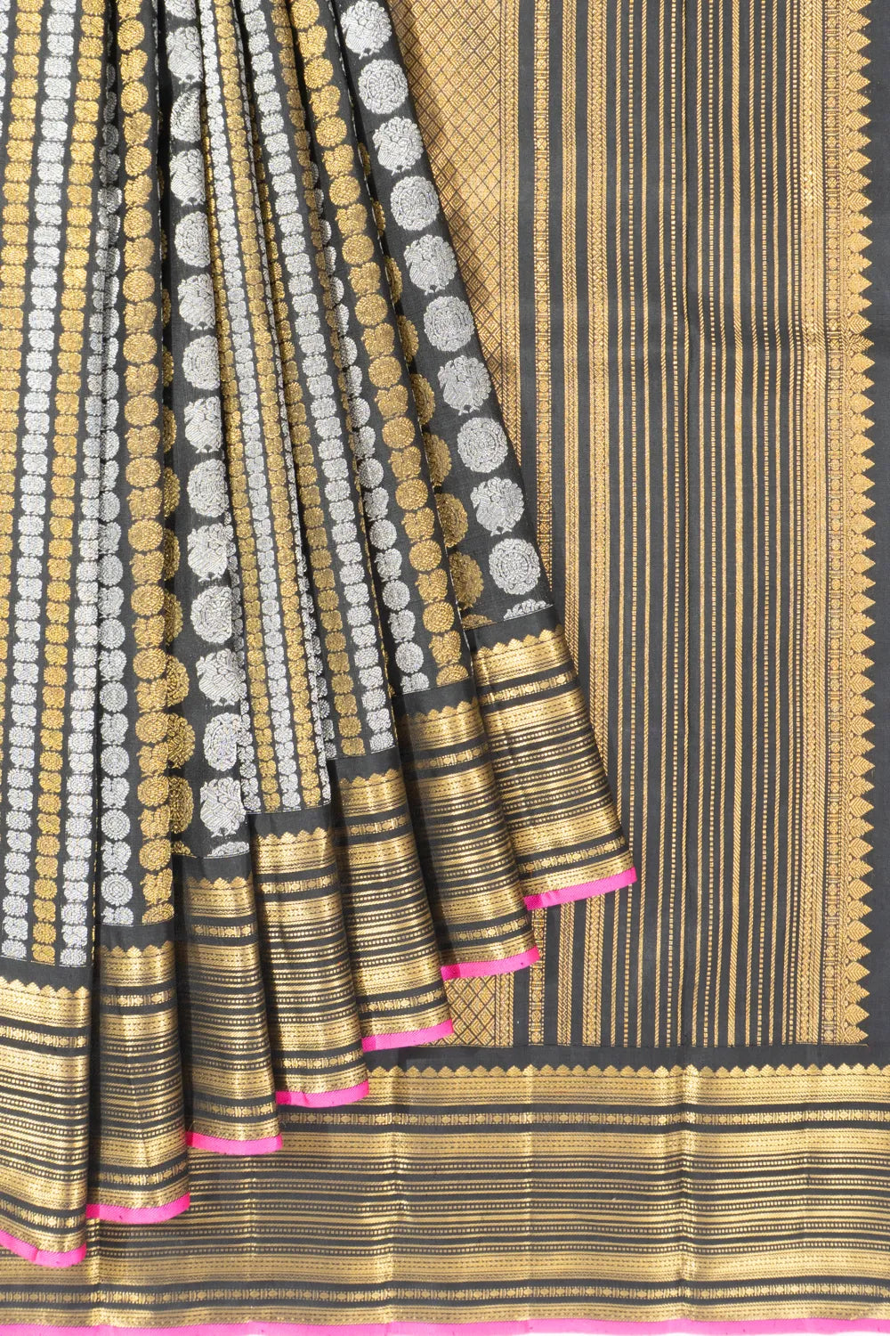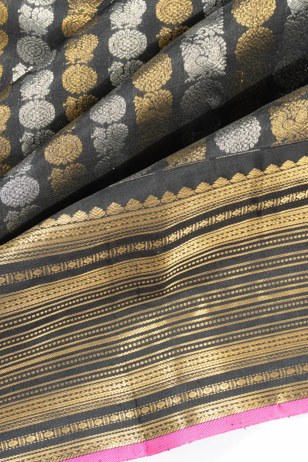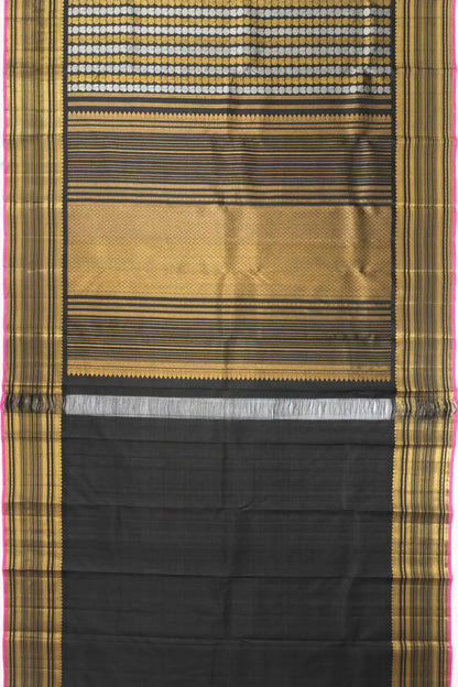 Kanchipuram Silk Half And Half Brocade Black Saree