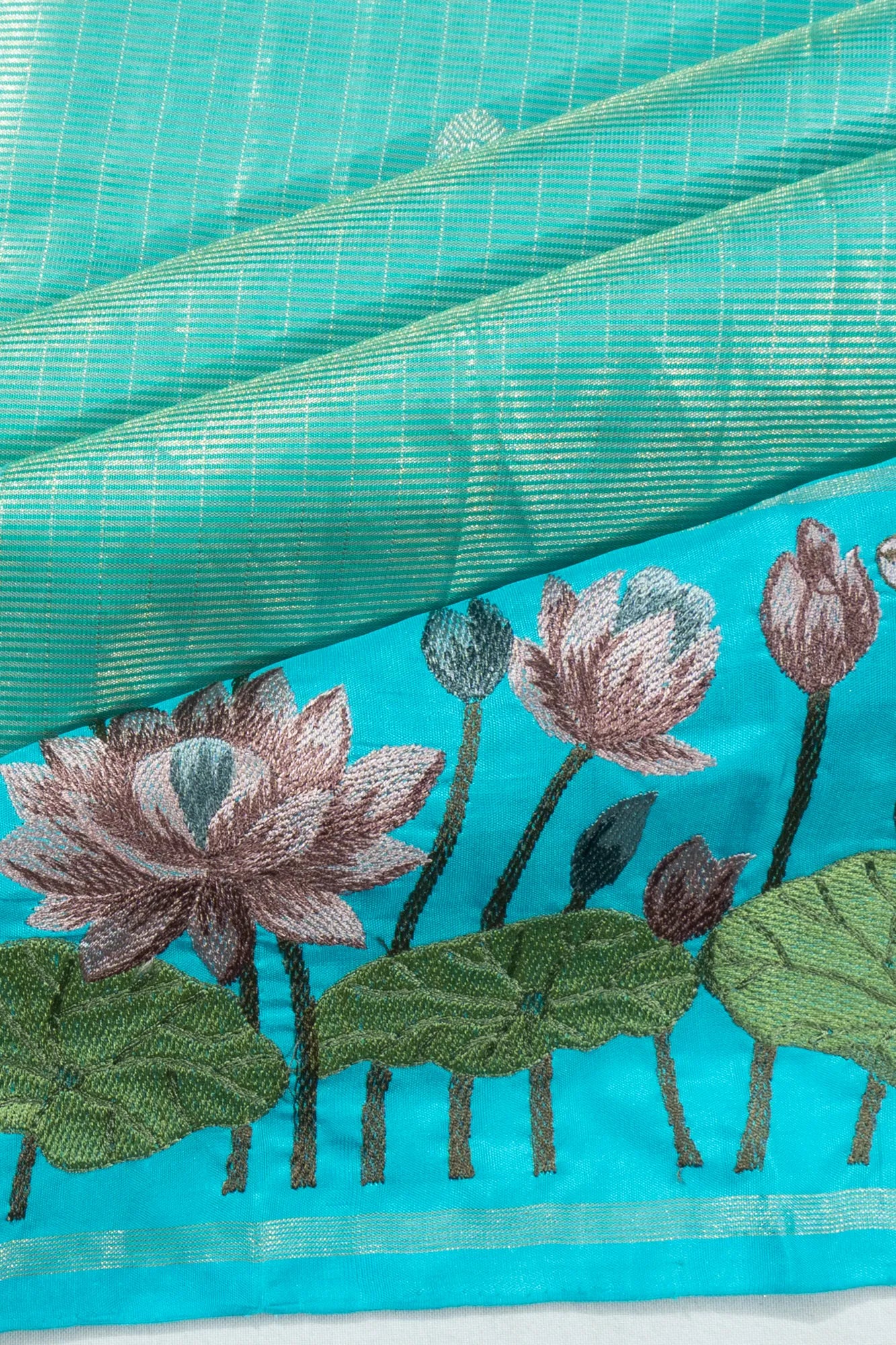 Kanchipuram Silk Horizontal Lines SKy Blue Saree With Pichwai Embroidery Border