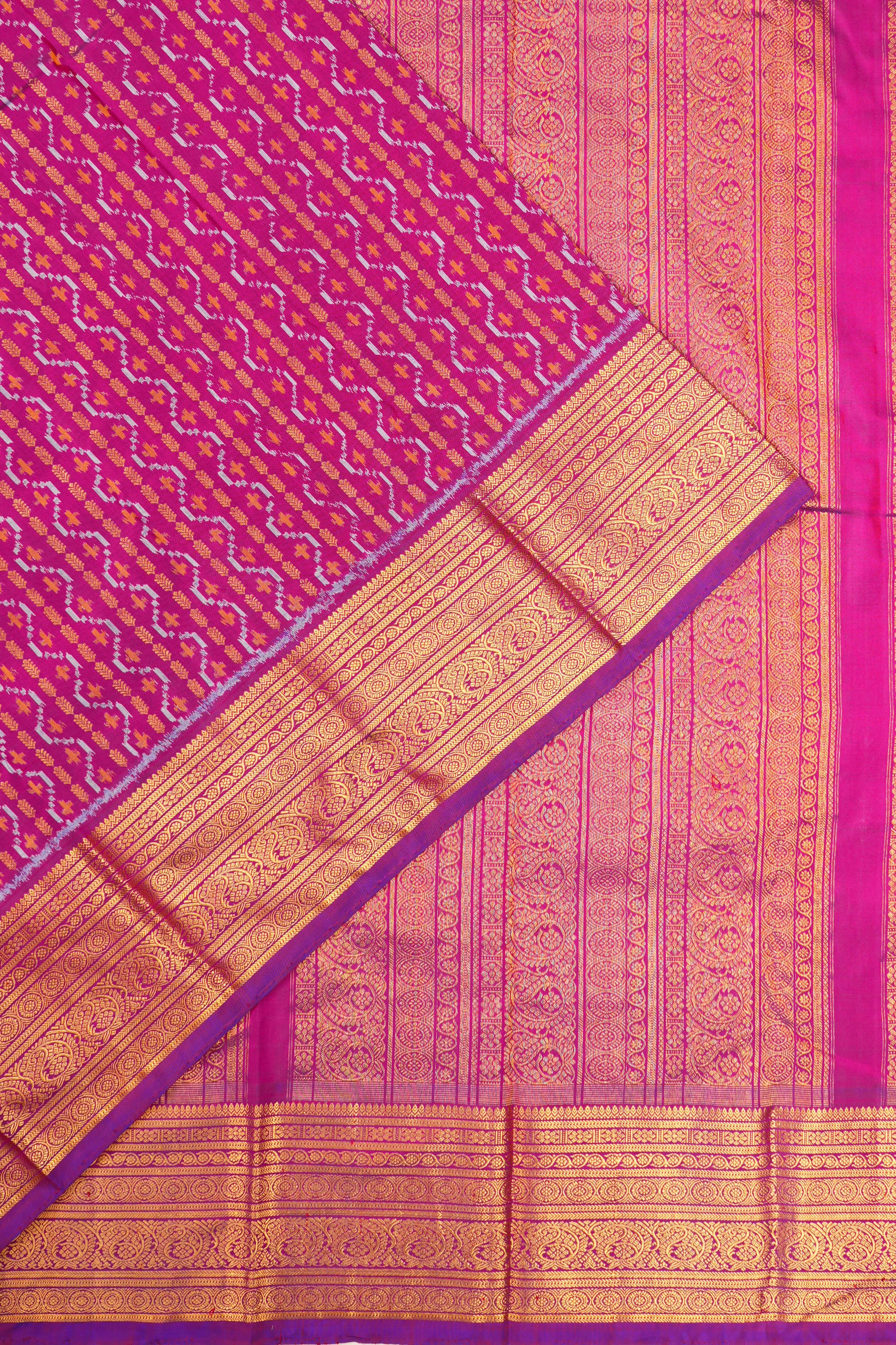 Kanchipuram Silk Ikat And Vertical Lines Rani Pink Saree