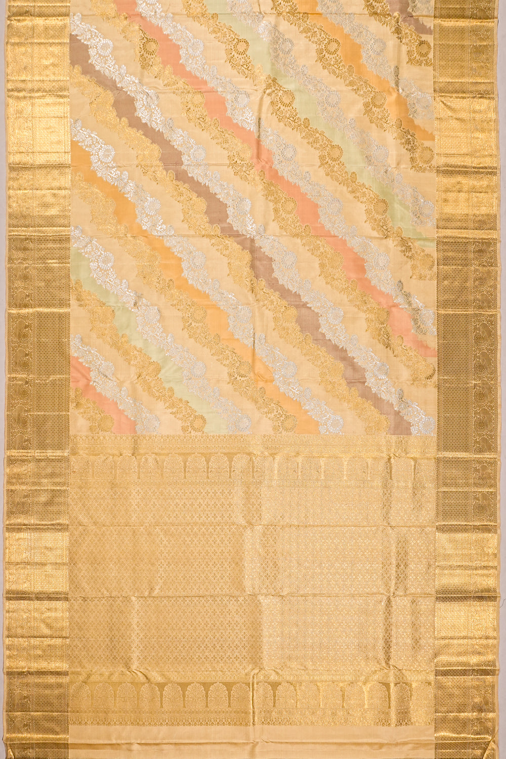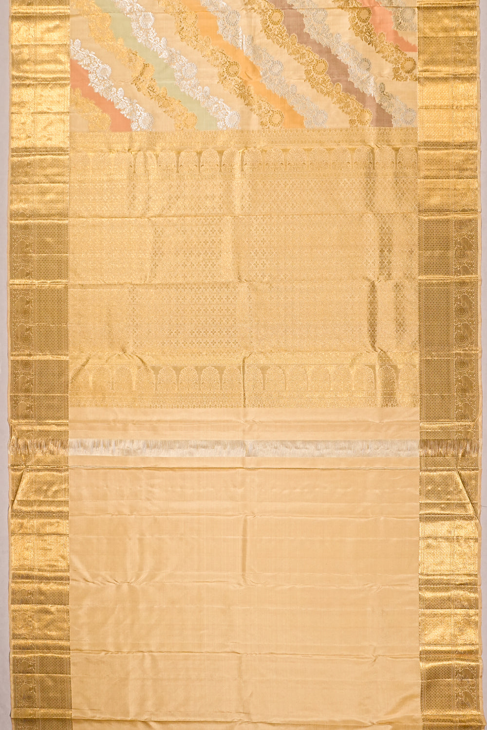 Kanchipuram Silk Jaal Rangkat Cream Saree 1214981907