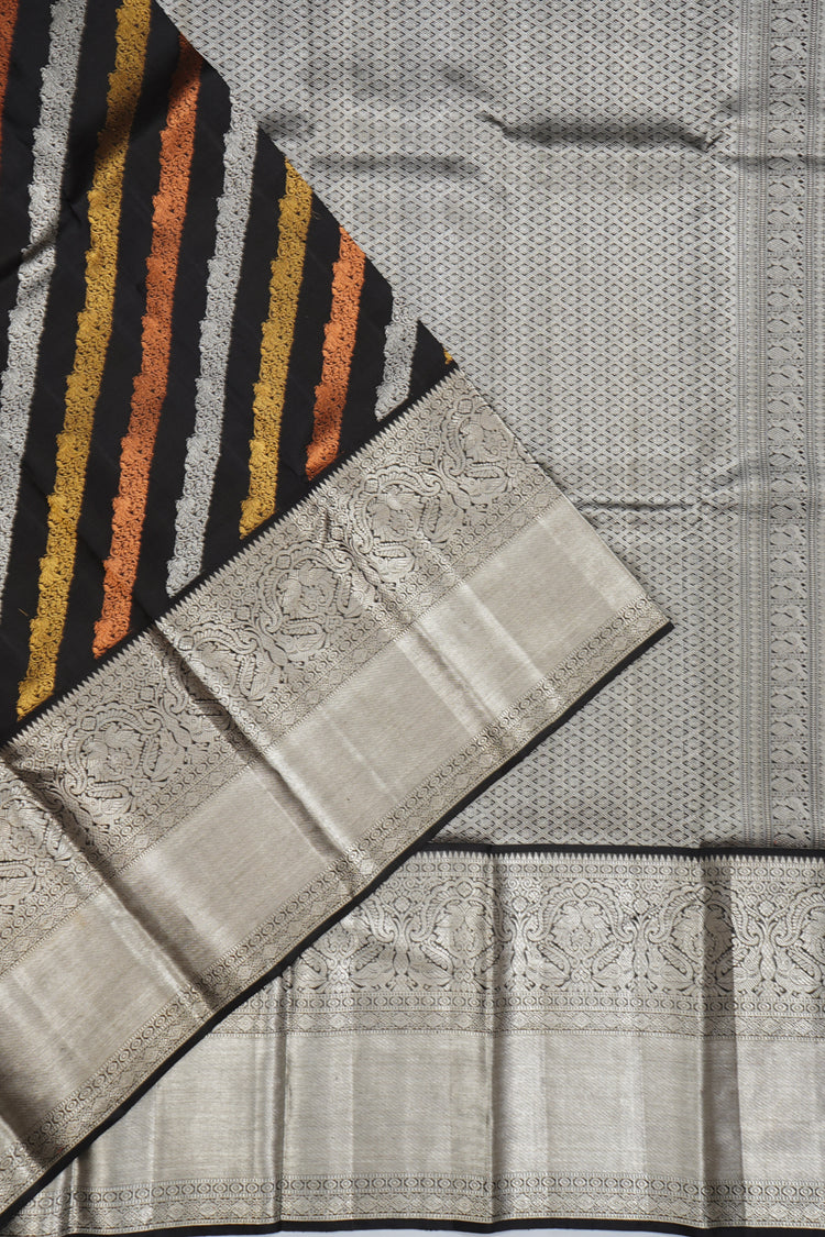 Kanchipuram Silk Leheriya Jaal Black Saree