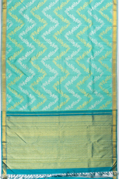 Kanchipuram Silk Leheriya Jaal Blue Saree