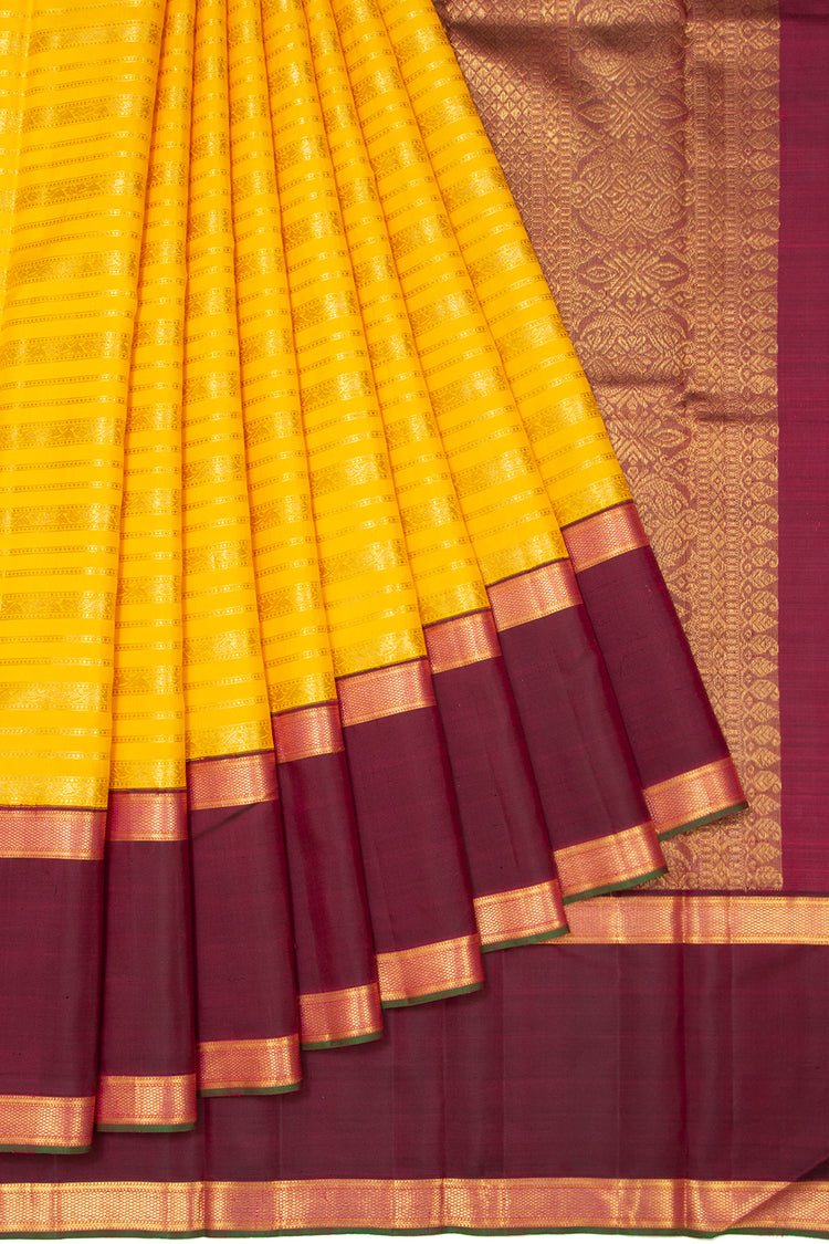 Kanchipuram Silk Lines Brocade Yellow Saree