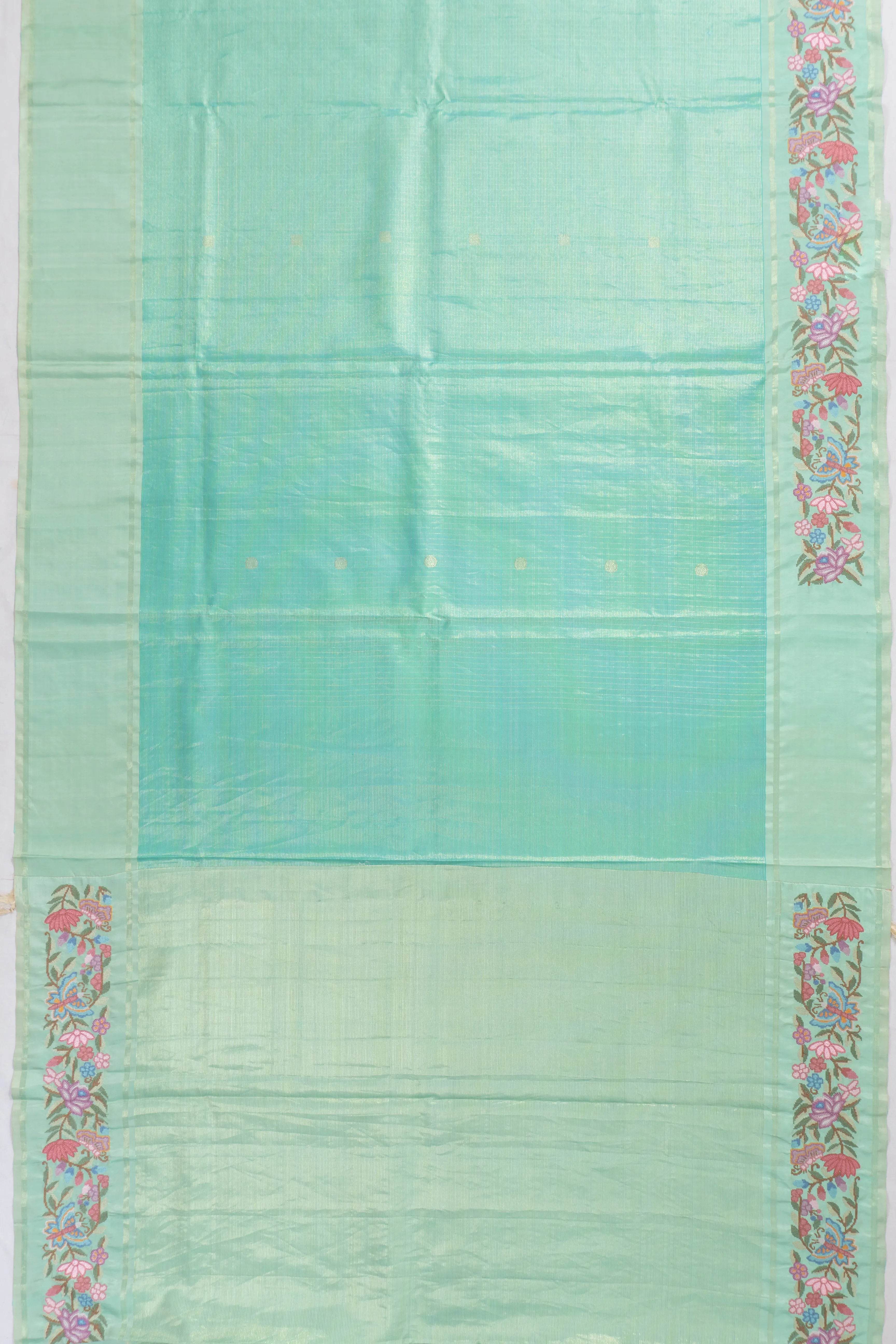 Kanchipuram Silk Lines Butta Sea Blue Saree With Embroidery Border