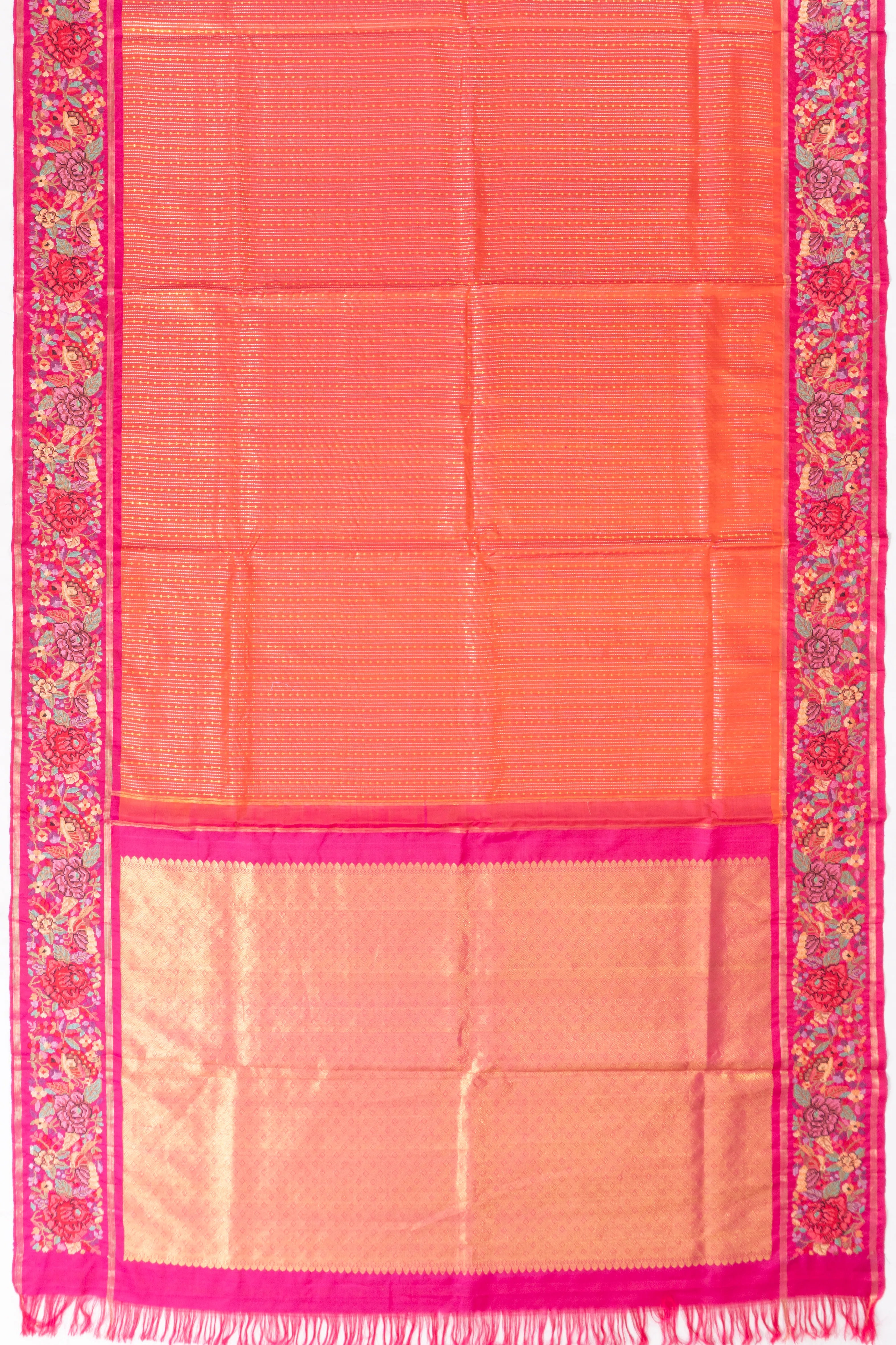 Accompanied by a complementary plain rani pink blouse, this saree ensures a seamless and refined ensemble