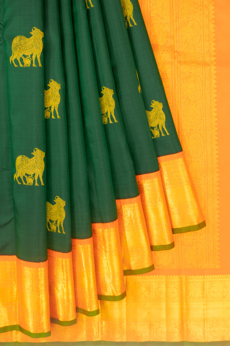 Kanchipuram Silk Pichwai Butta Dark Green Saree