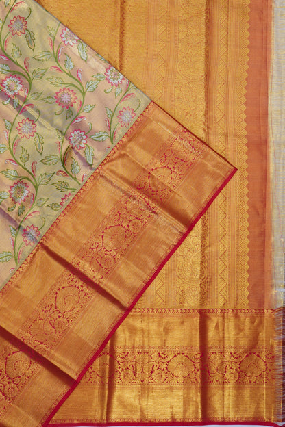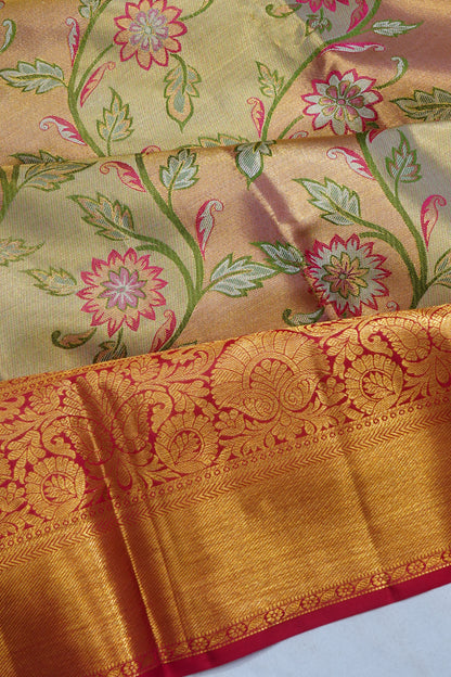 Kanchipuram Silk Tissue Brocade Gold Saree