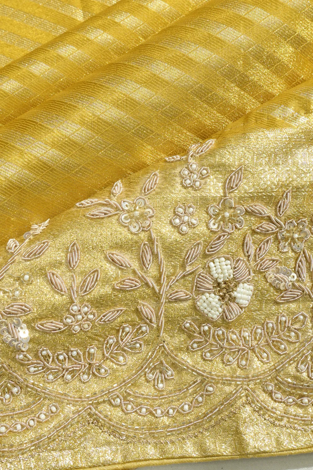 Kanchipuram Silk Tissue Brocade Gold Saree With Zardosi Work