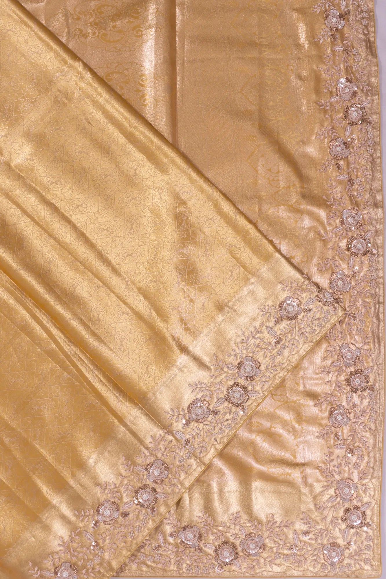 Kanchipuram Silk Tissue Brocade Gold Saree With Zardosi Work
