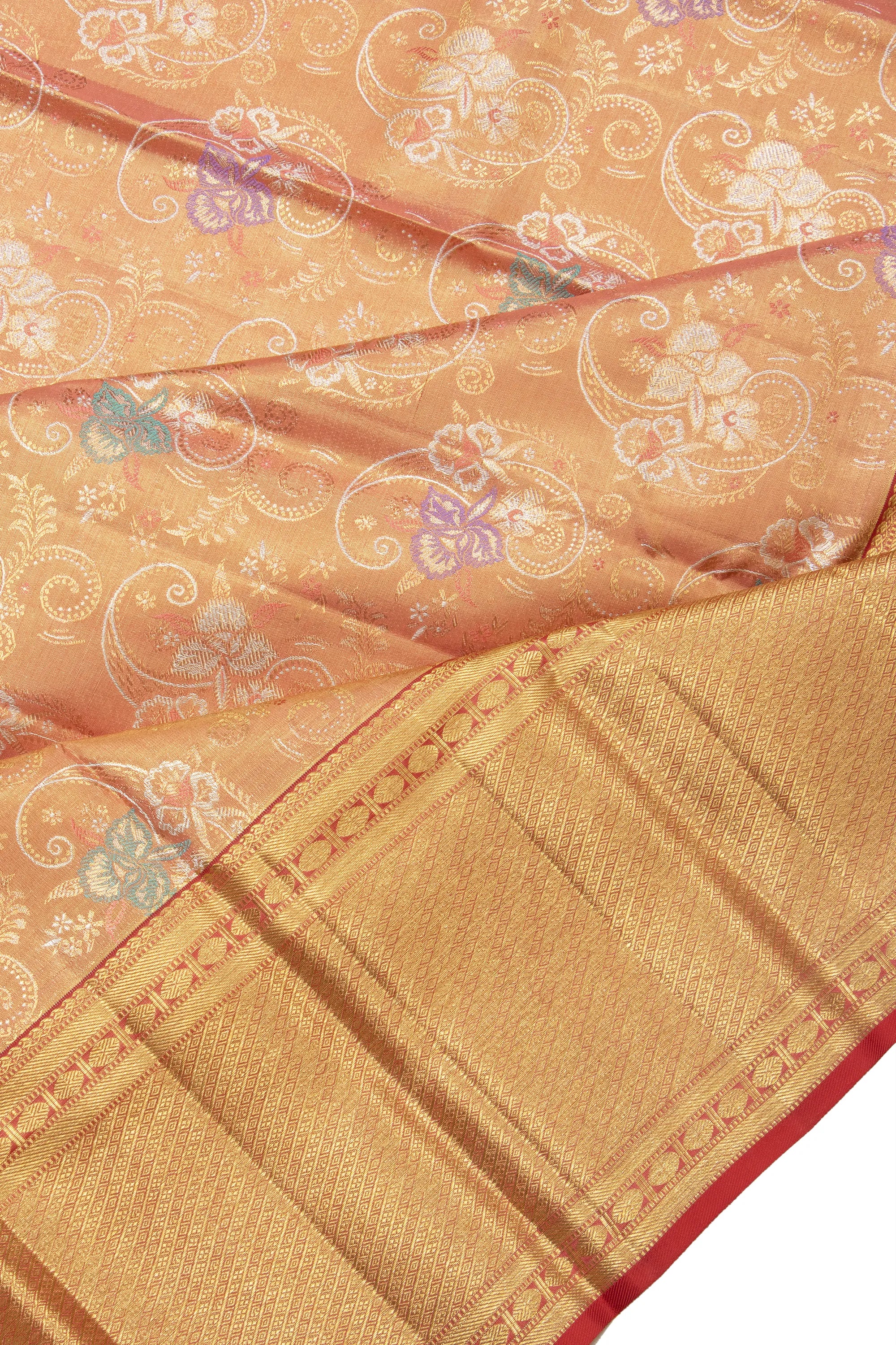 Kanchipuram Silk Tissue Brocade Pastel Orange Saree