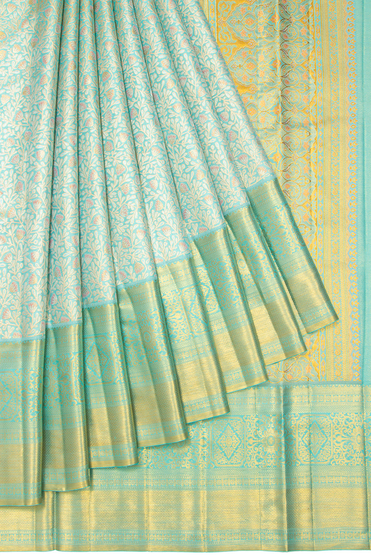 Kanchipuram Silk Tissue Brocade Sky Blue Saree