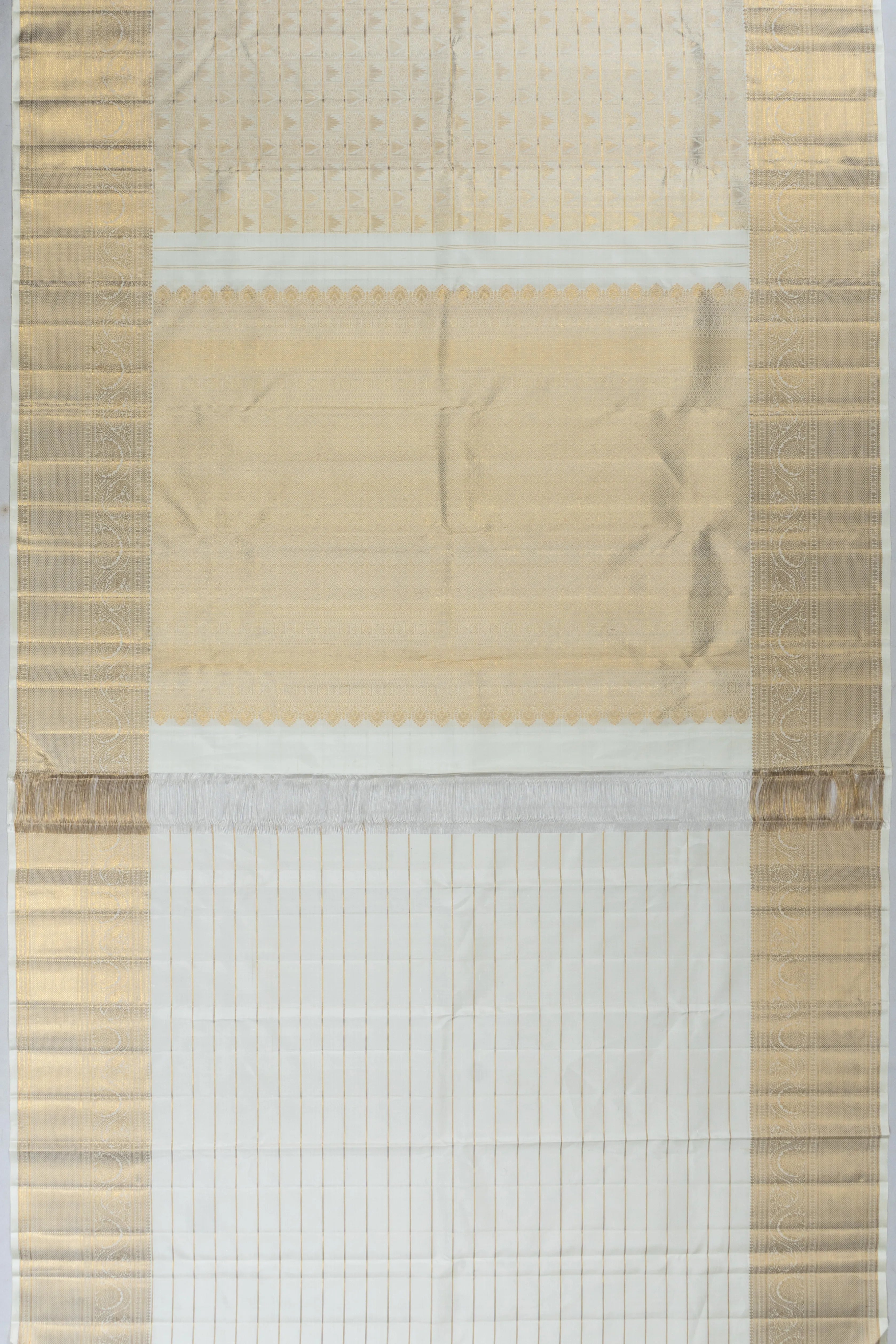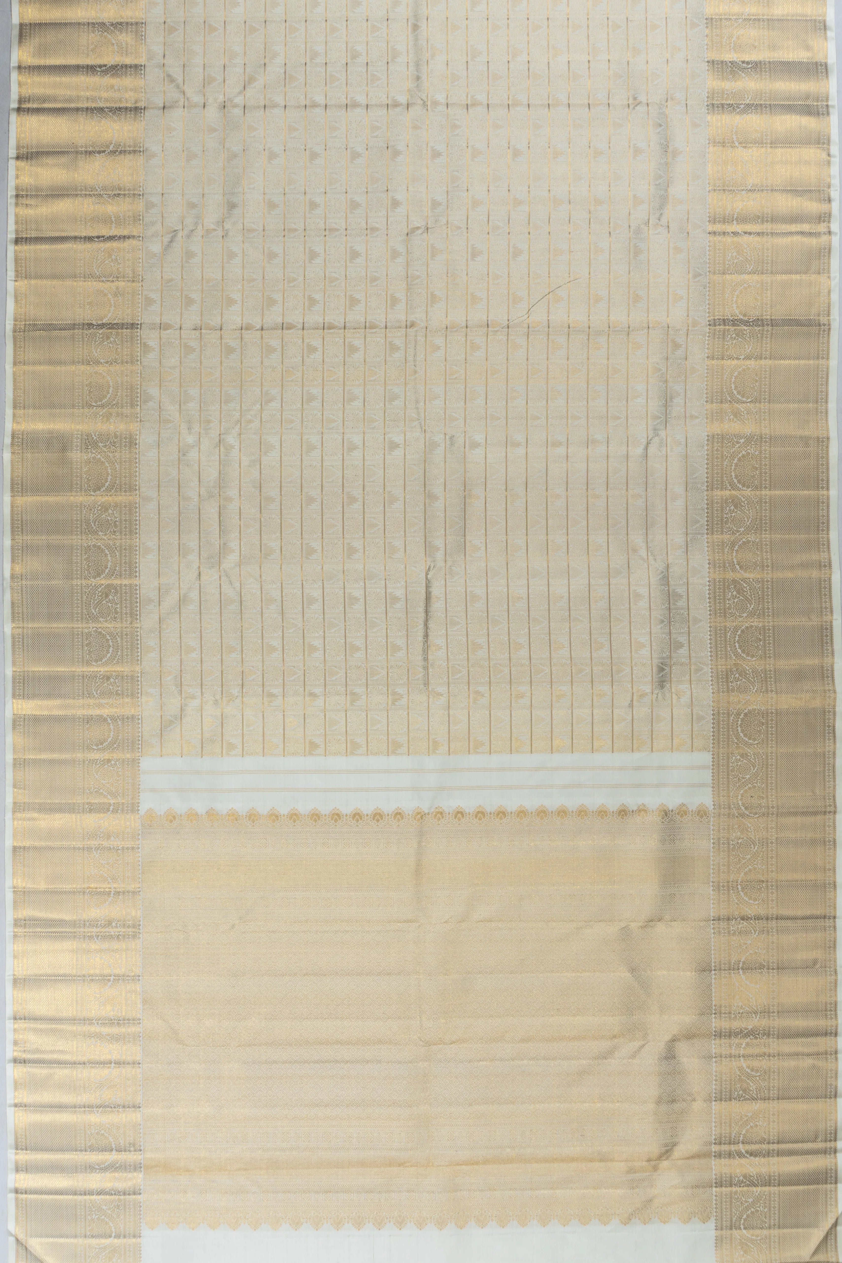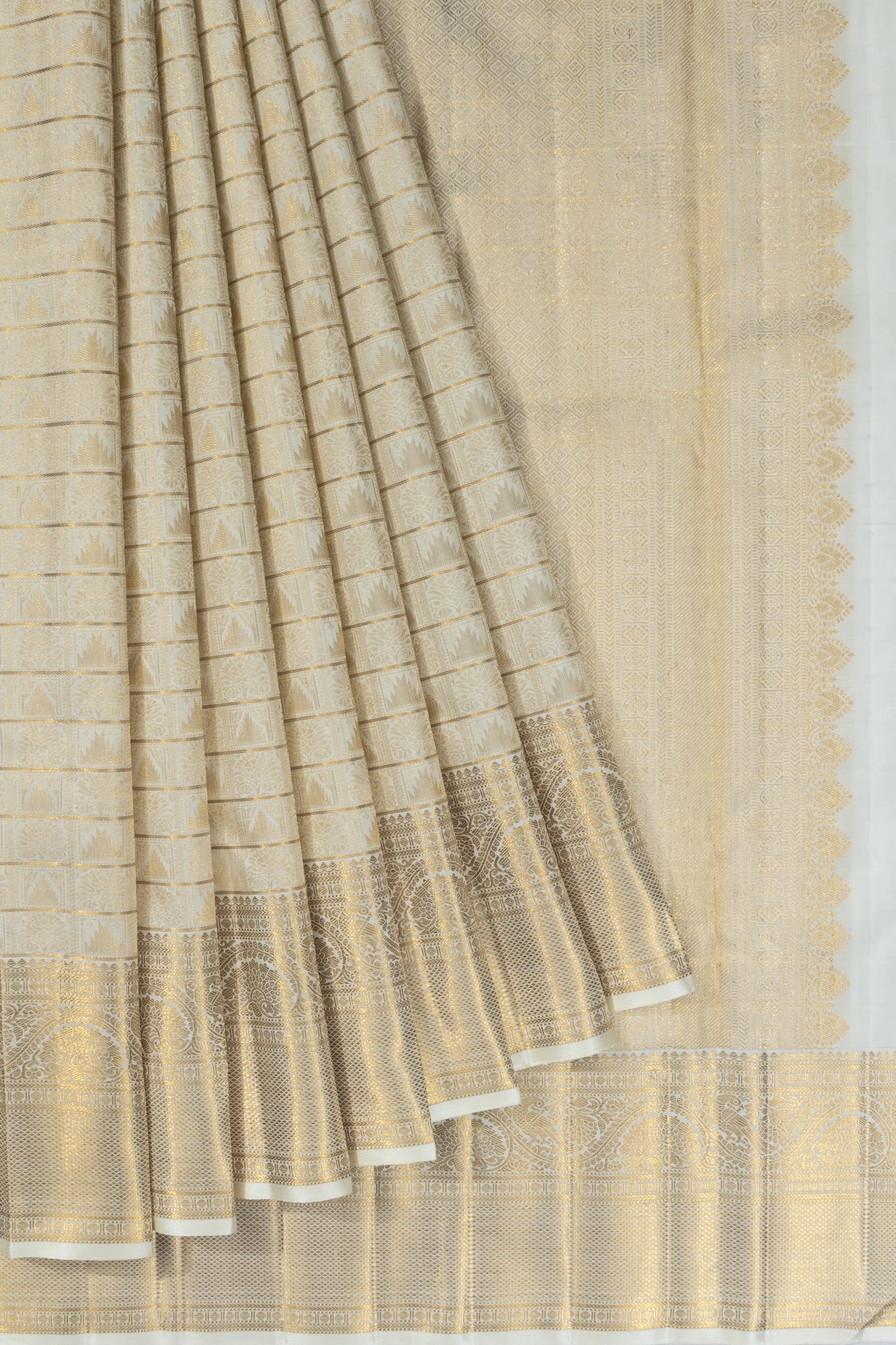 Kanchipuram Silk Tissue Checks And Butta Off White Saree