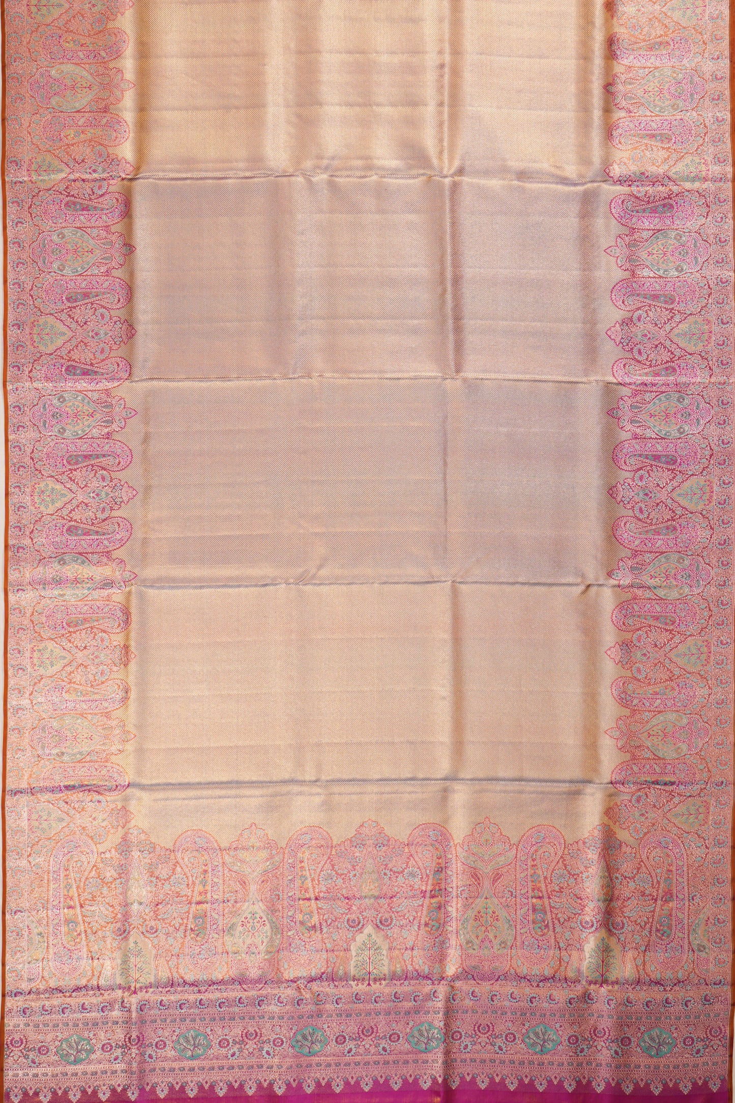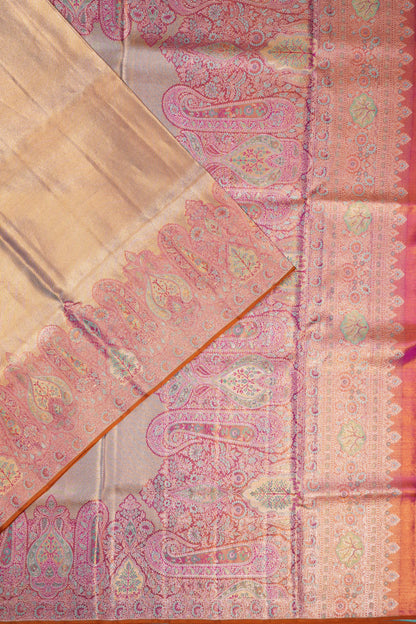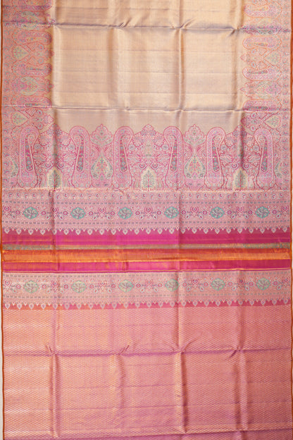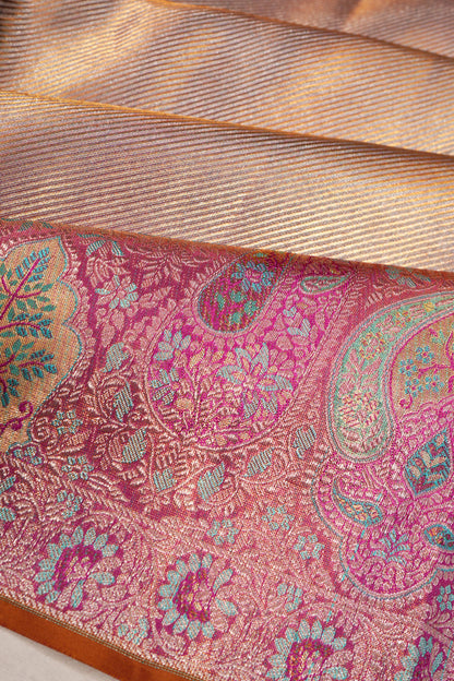 Kanchipuram Silk Tissue Diagonal Lines Gold Saree