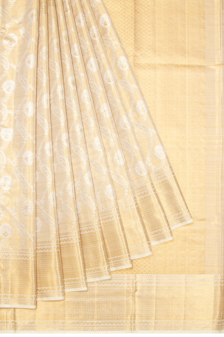 Kanchipuram Silk Tissue Jaal Gold Saree
