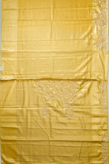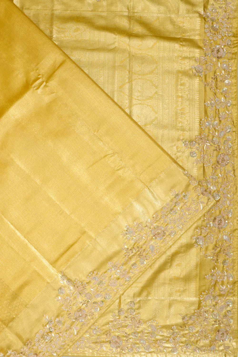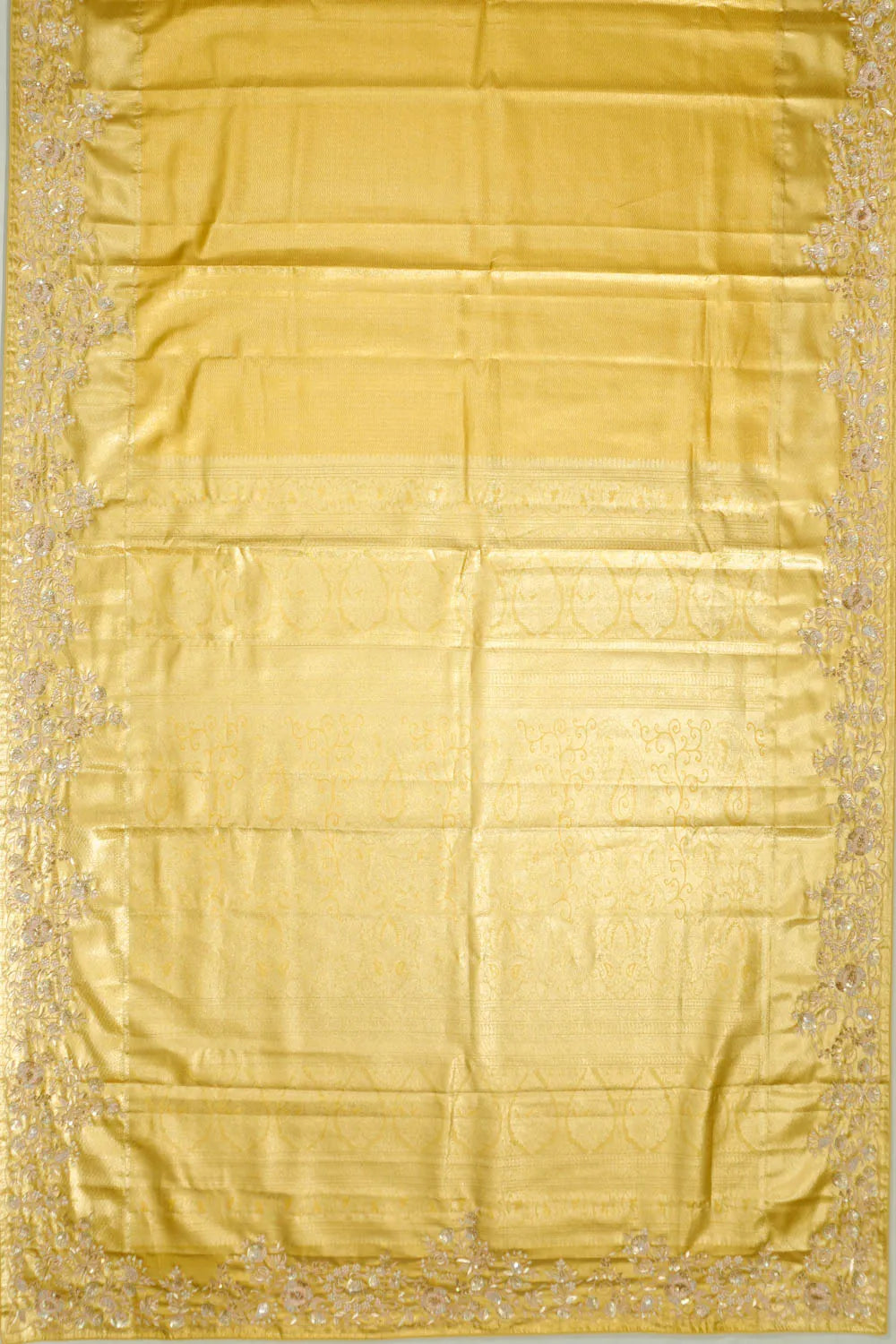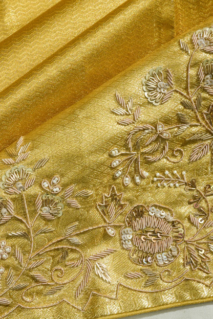 Kanchipuram Silk Tissue Zig Zag Lines Gold Saree With Zardosi Work