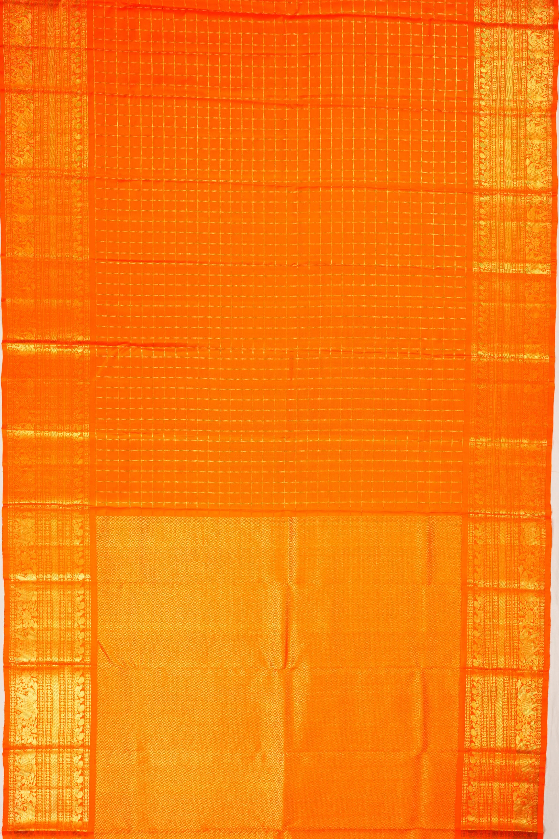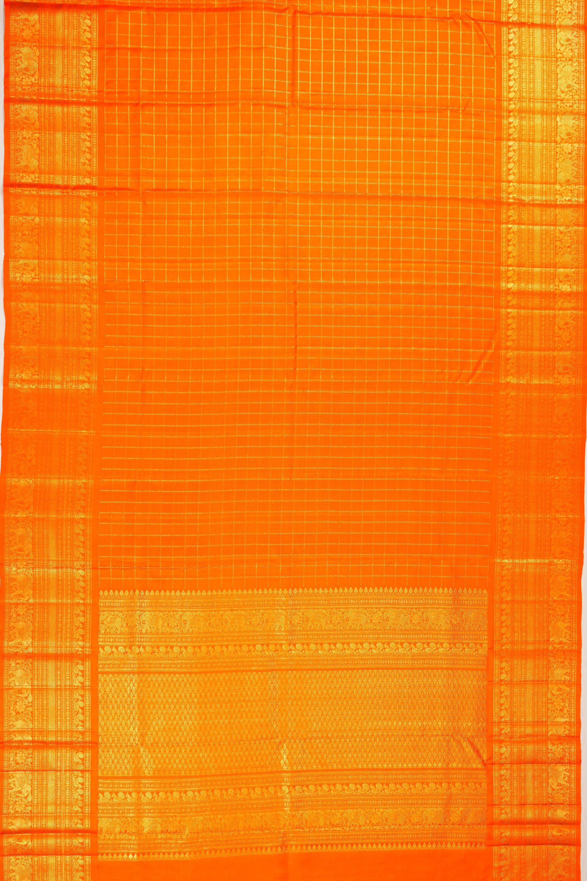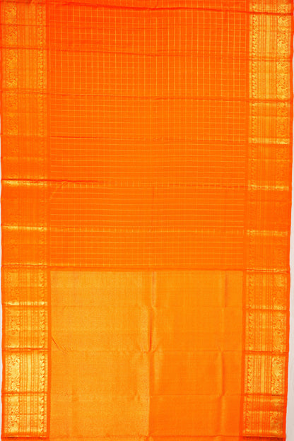 Kanchipuram Silk Twill Checks Orange Saree