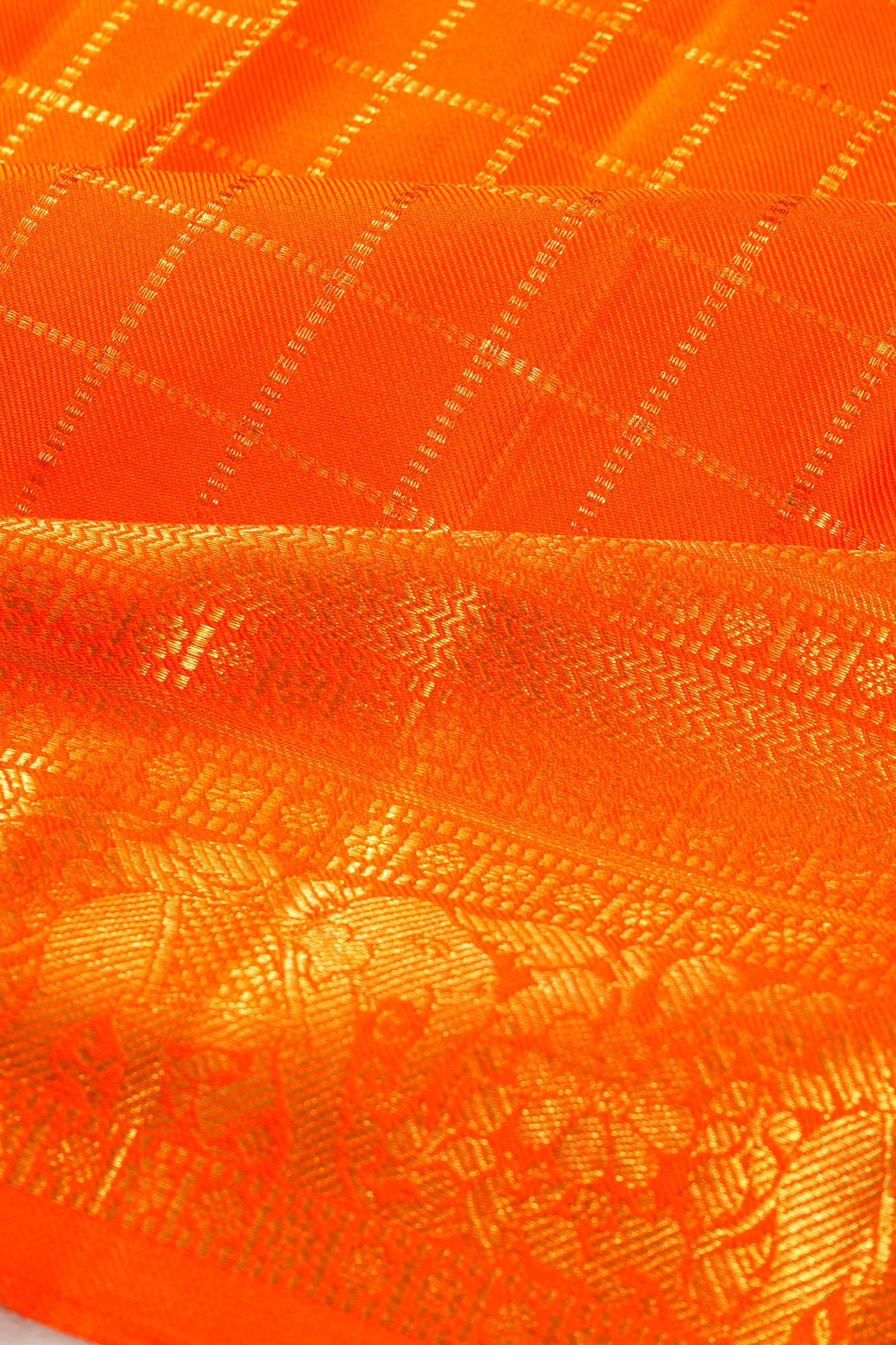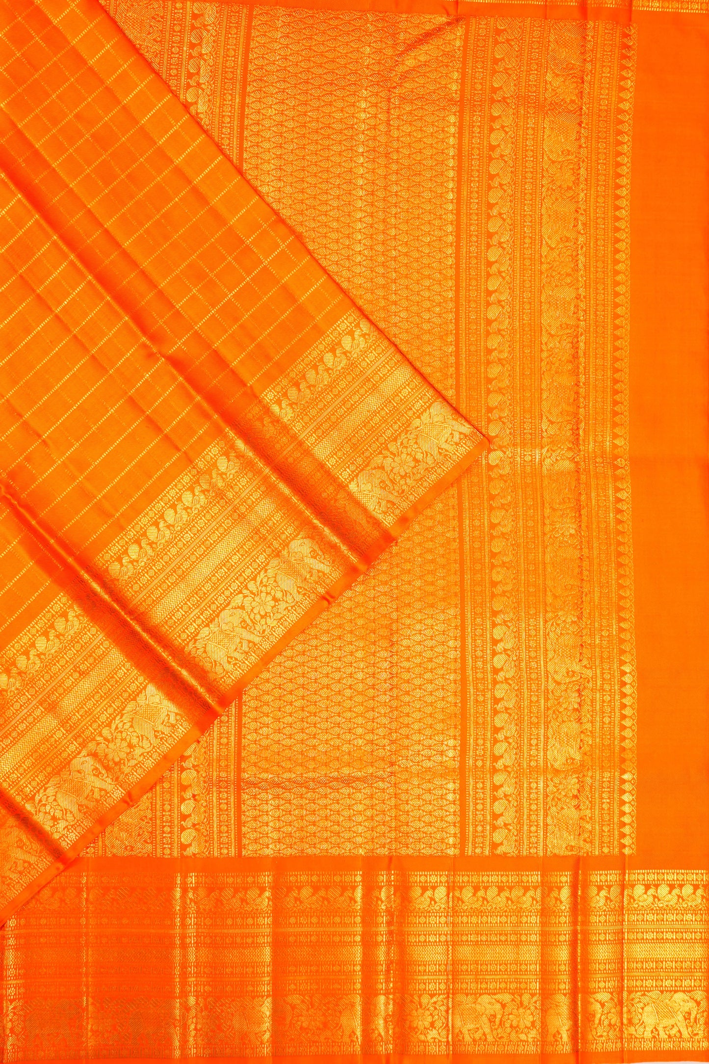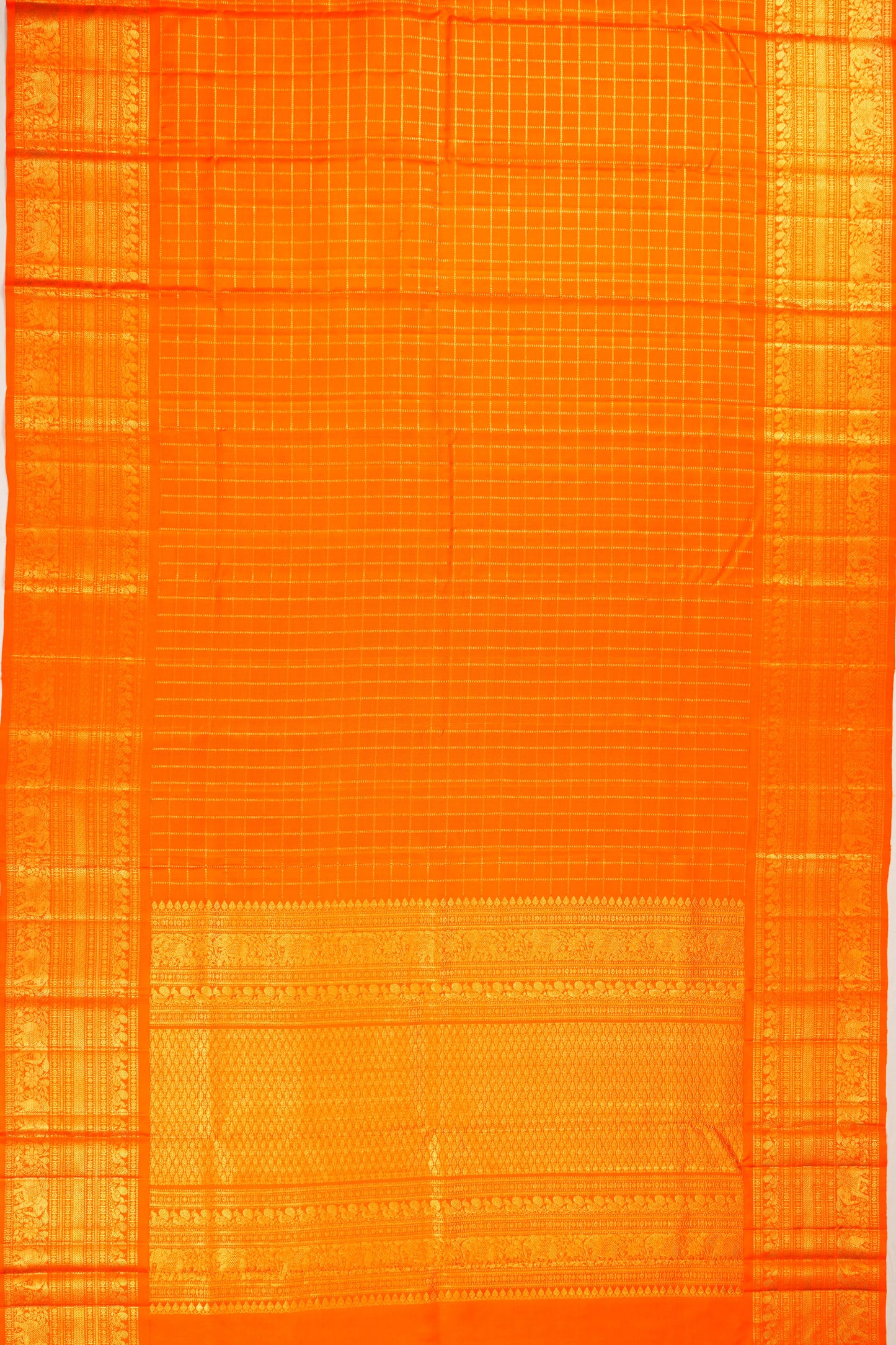 Kanchipuram Silk Twill Checks Orange Saree