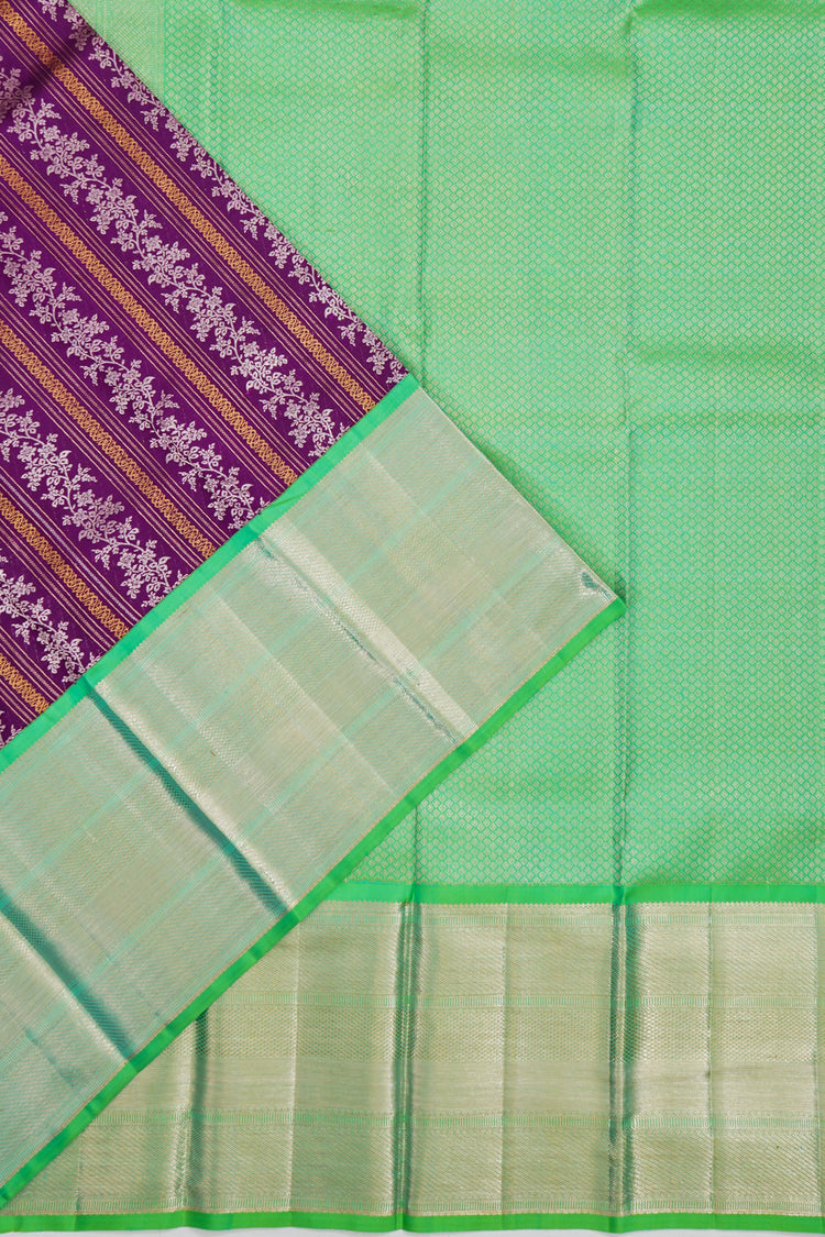 Kanchipuram Silk Vertical Lines And Brocade Purple Saree