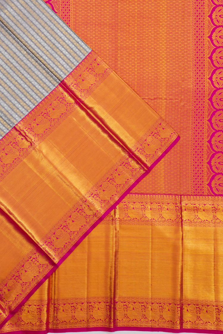 Elegant grey body crafted from gold and silver zari vertical brocade, offering a sophisticated and modern appeal.