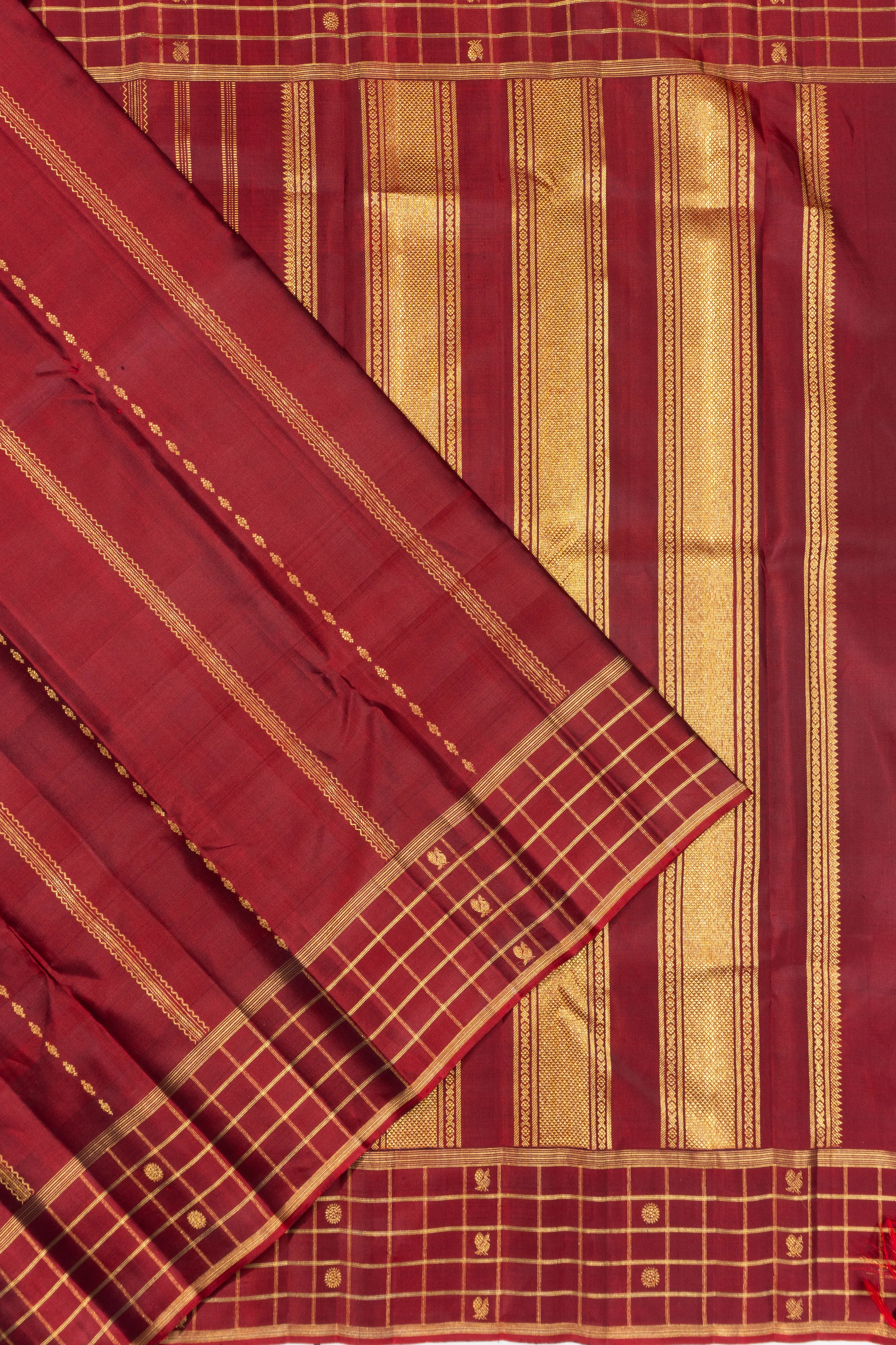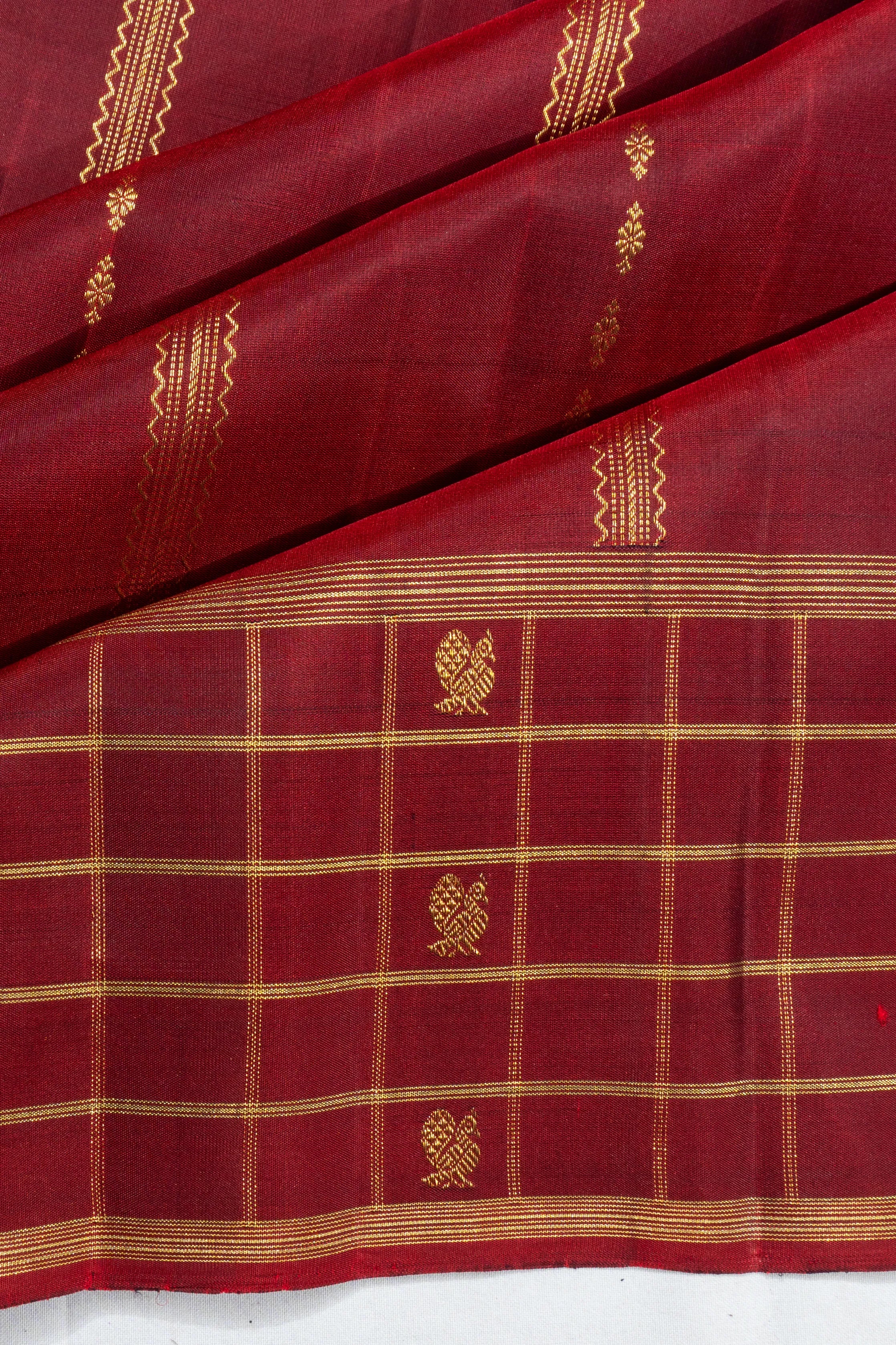 Kanchipuram Silk Vertical Lines Maroon Saree