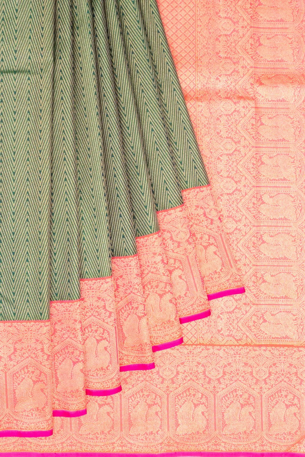 Kanchipuram Silk Zig Zag Lines Bottle Green Saree