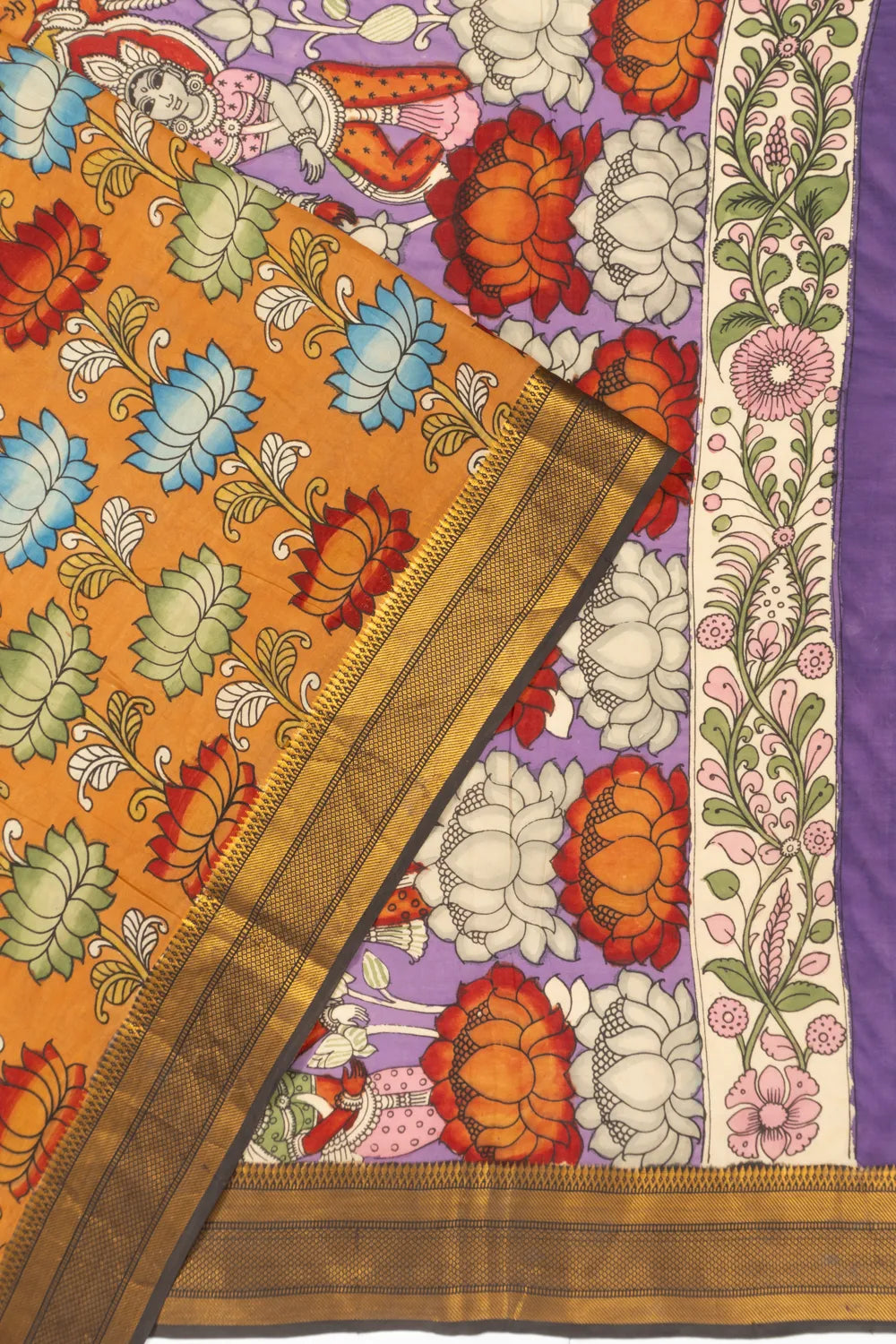 Kanchipuram X Kalamkari Silk Hand Painted Orange Saree