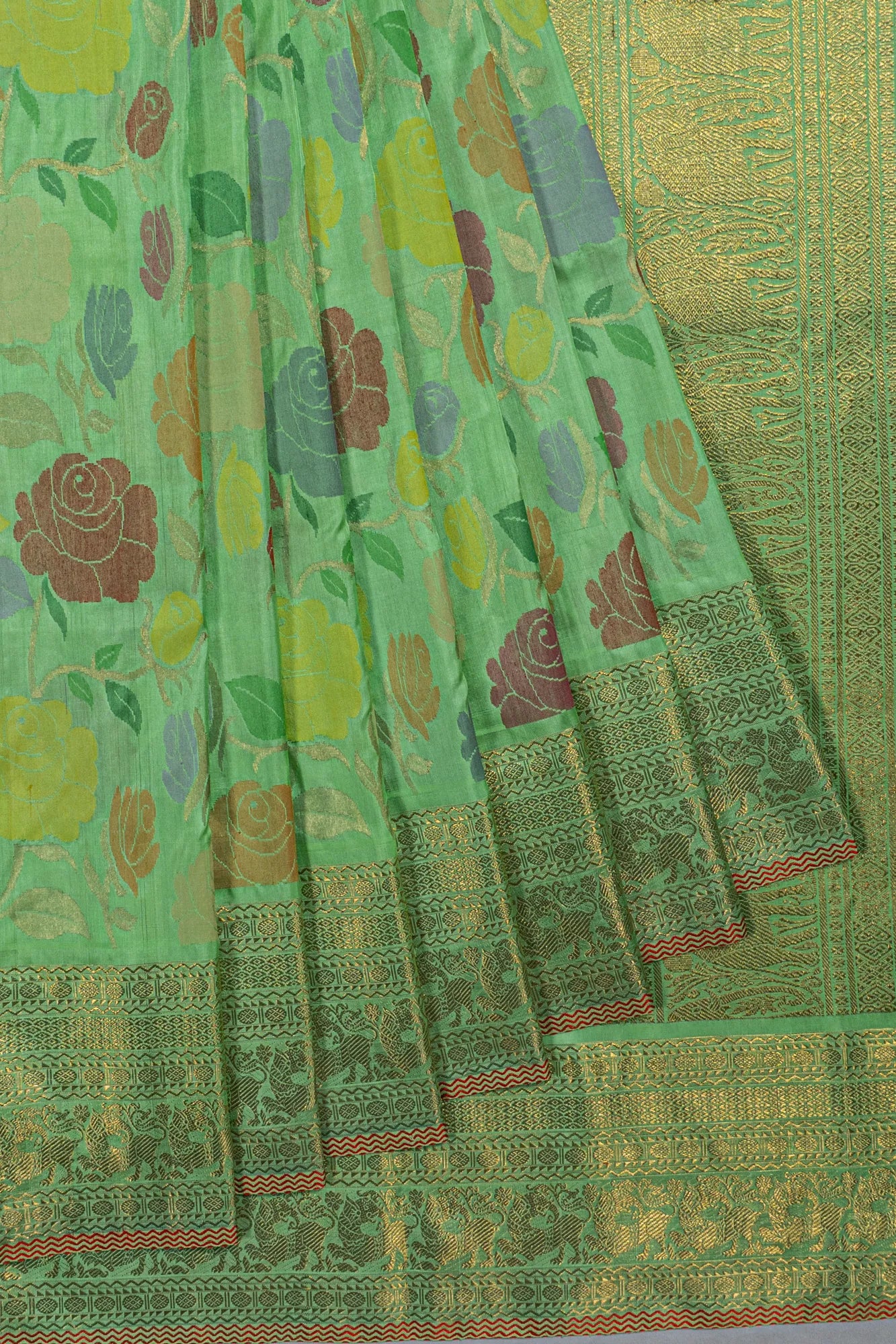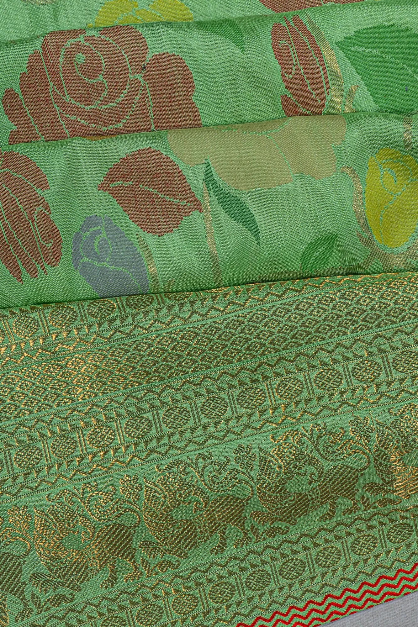 Kanchipuram X Uppada Silk All Over Jamdani Jaal Pastel Green Saree