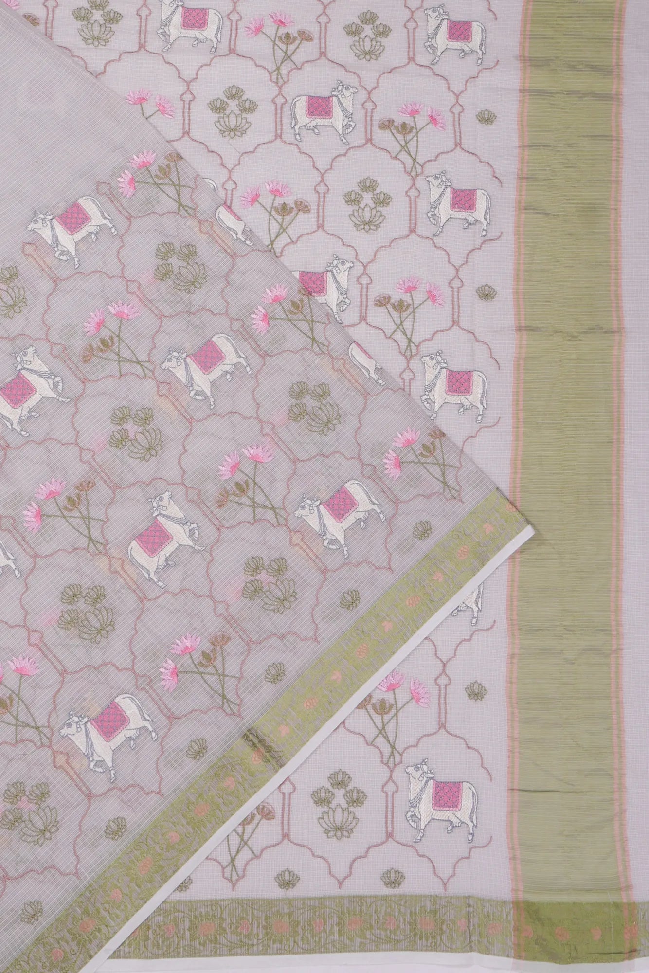 Kota Soft Silk Pichwai Embroidery Lilac Saree