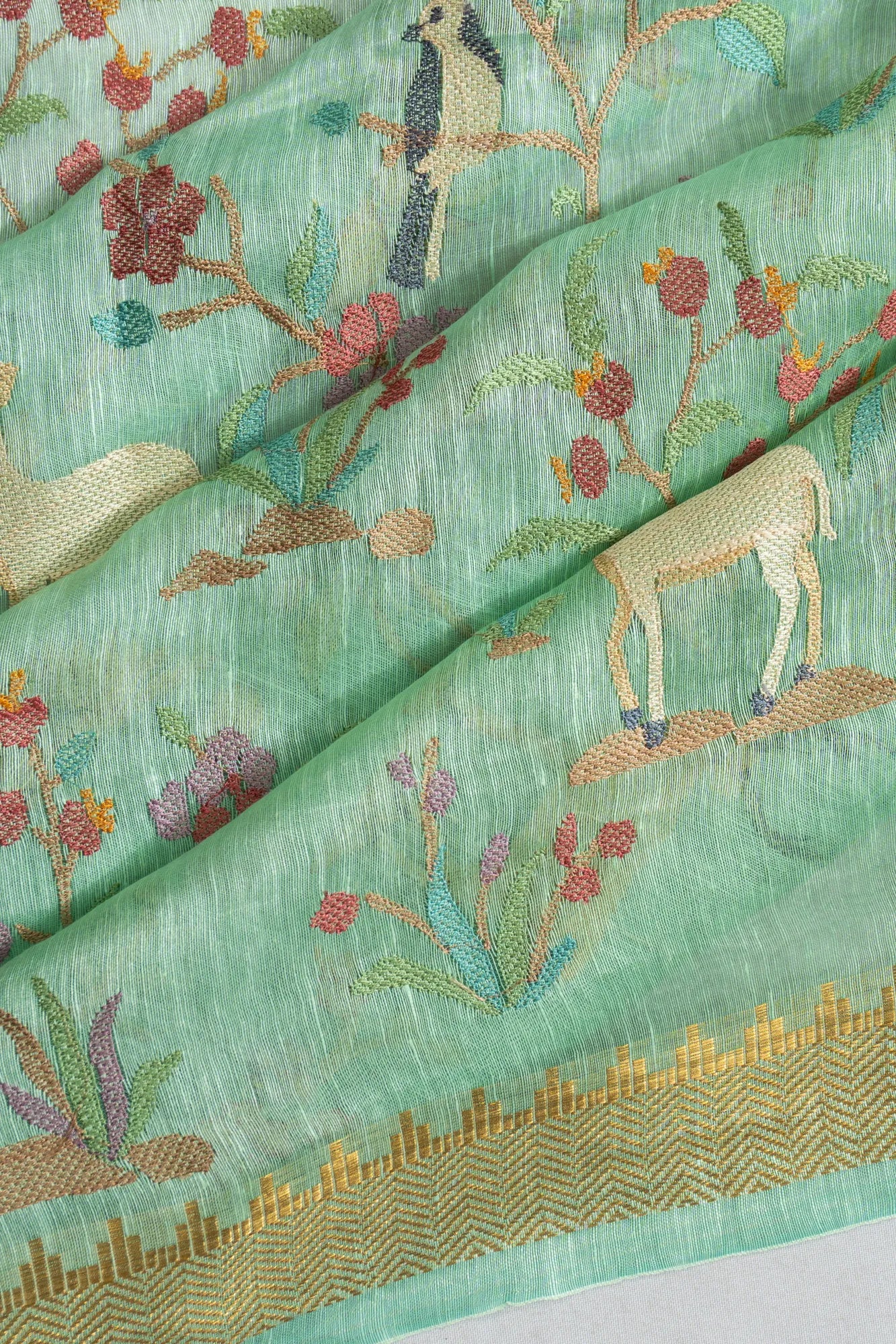 Linen Embroidery Sea Green Saree