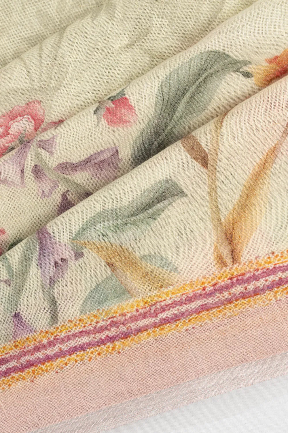 The self floral printed pallu enhances the saree’s natural elegance with artistic floral designs.