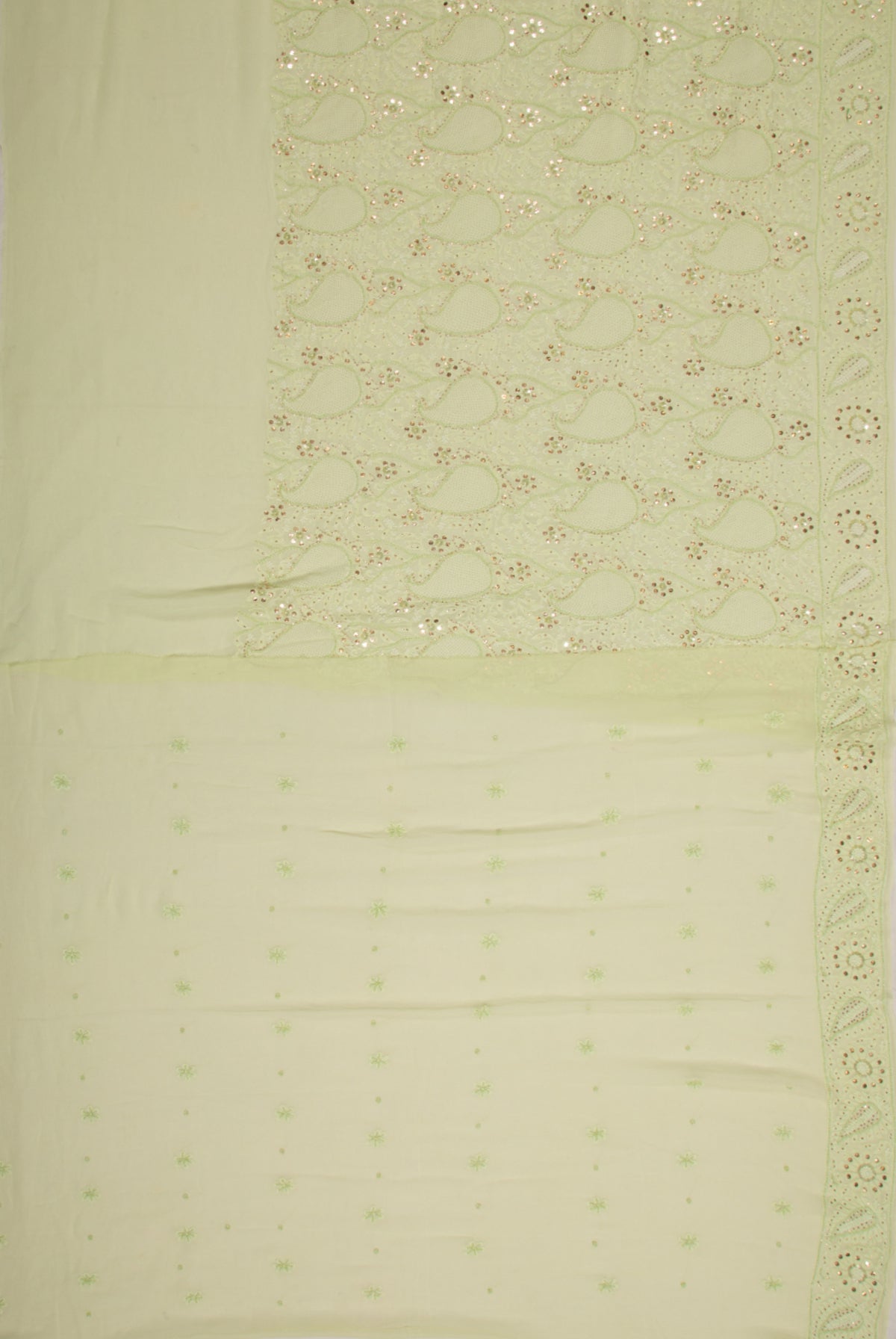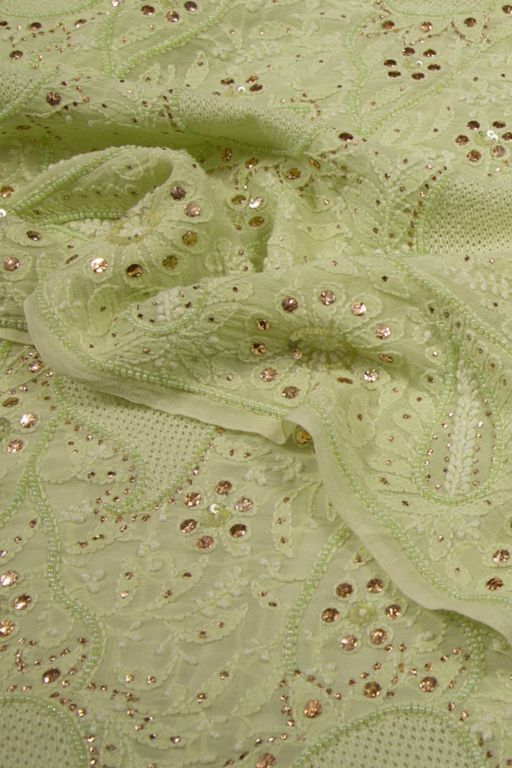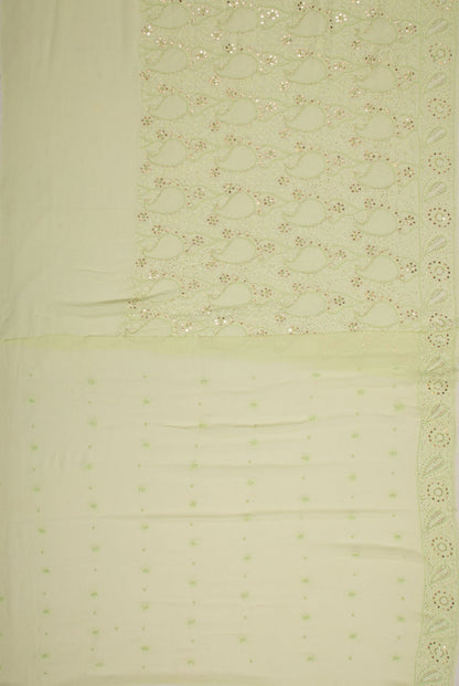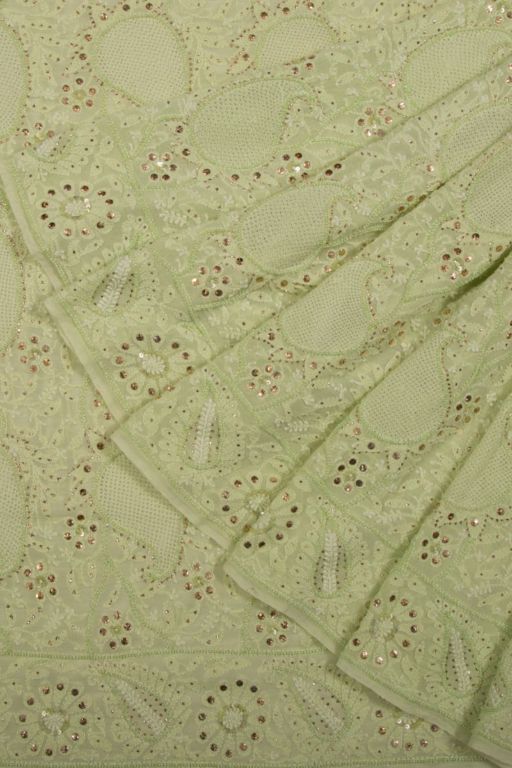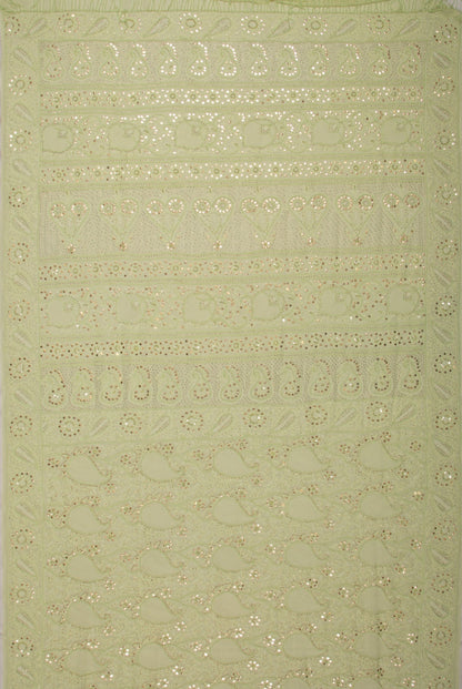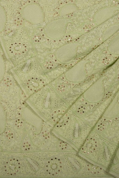 Lucknow Chikankari Georgette Pista Green Saree