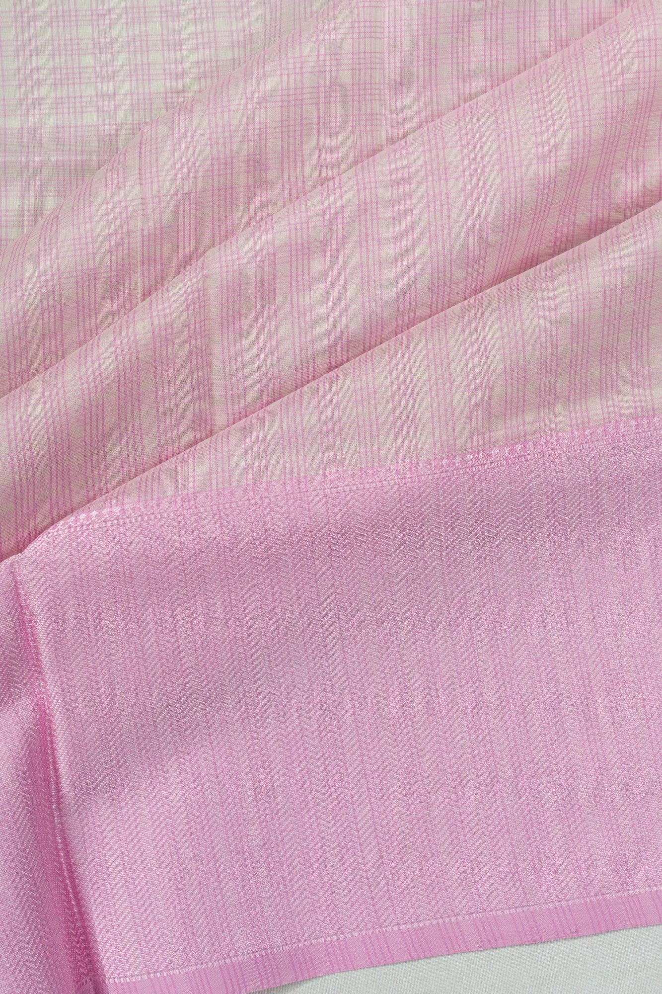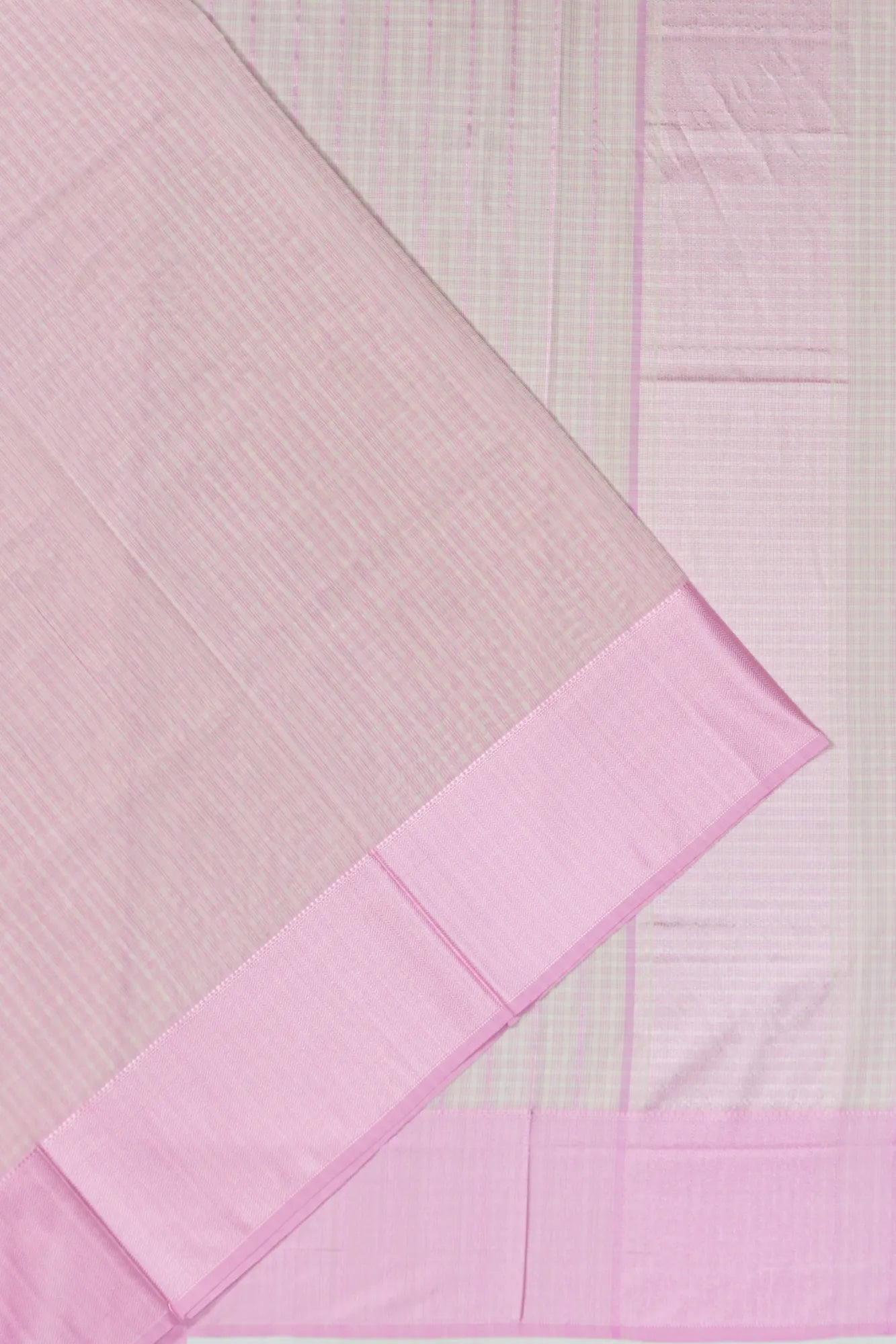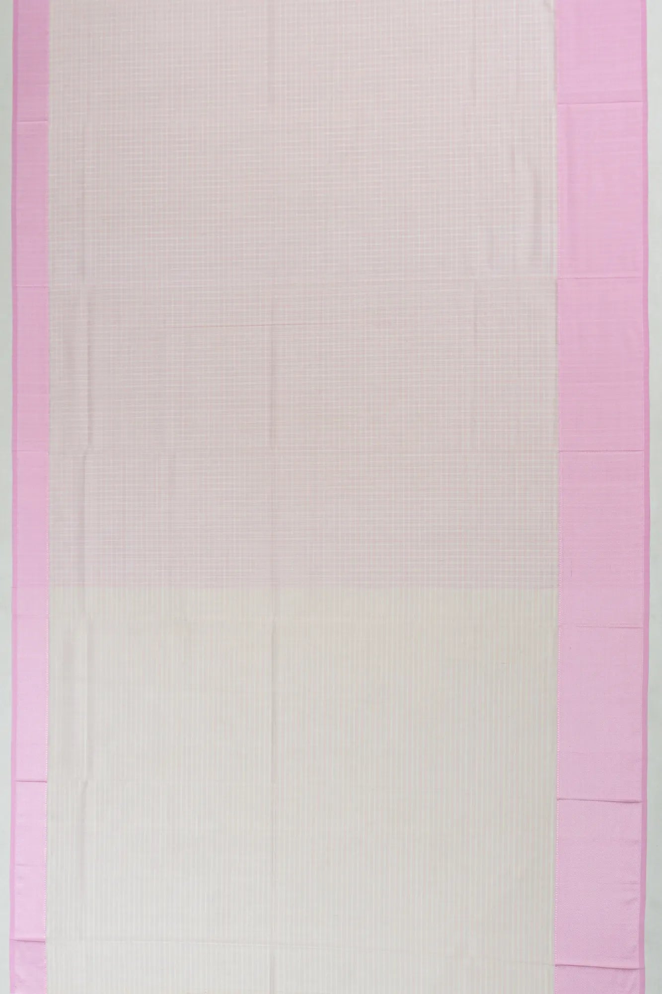 The self silver zari kaddi and checks pallu, adorned with tassels, creates a harmonious finish, enhancing its timeless appeal