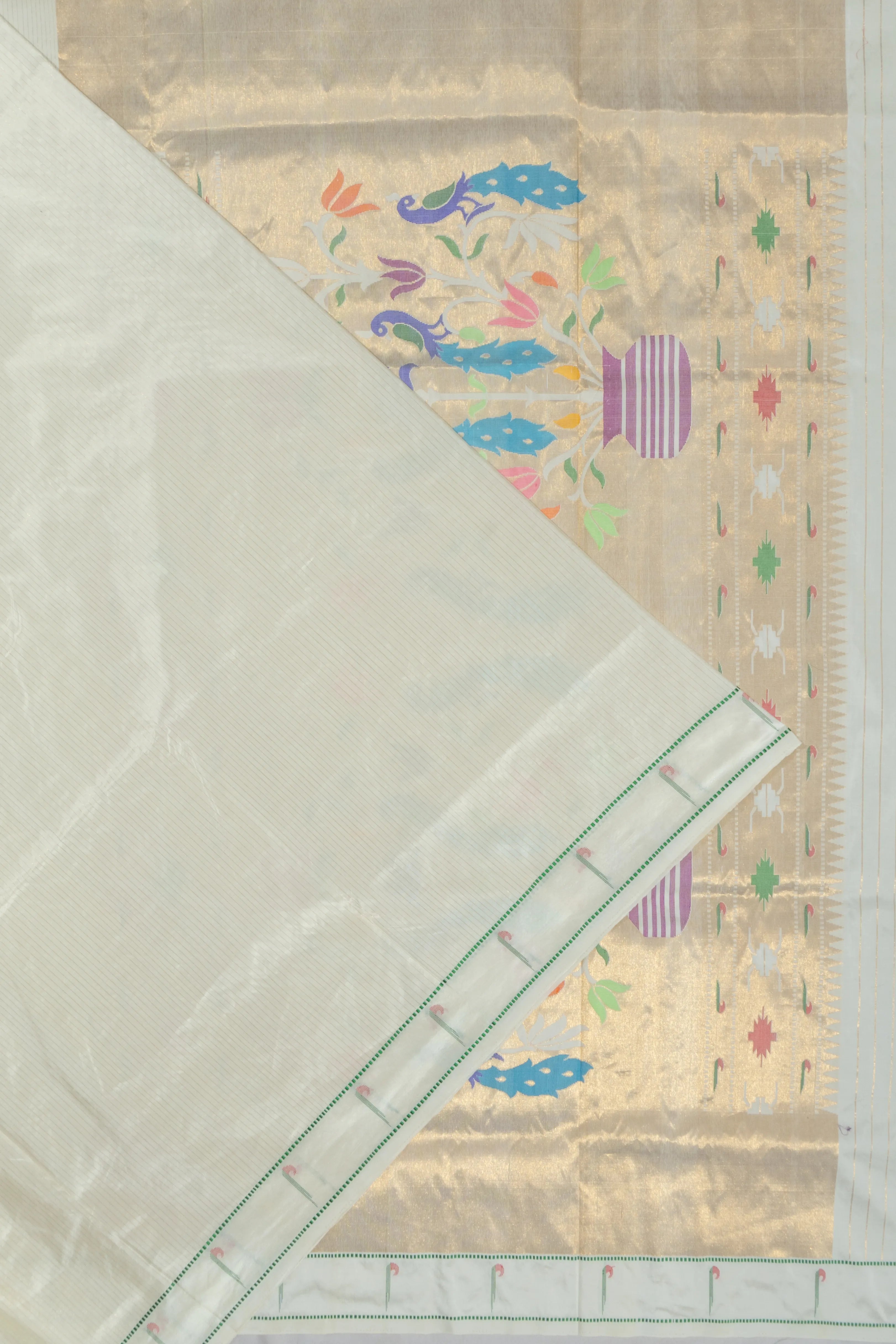 Muniya Silk Vertical Lines Off White Saree
