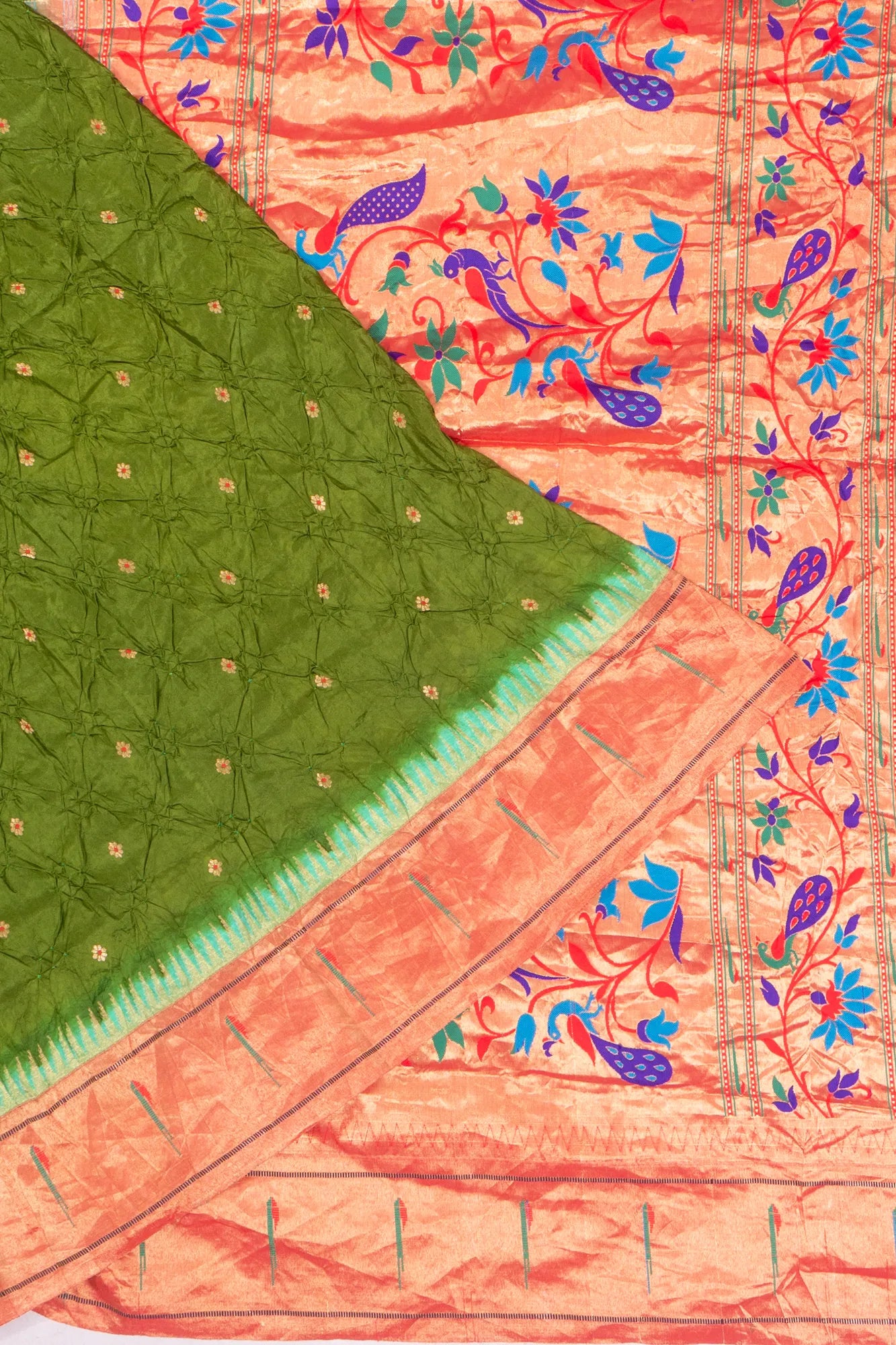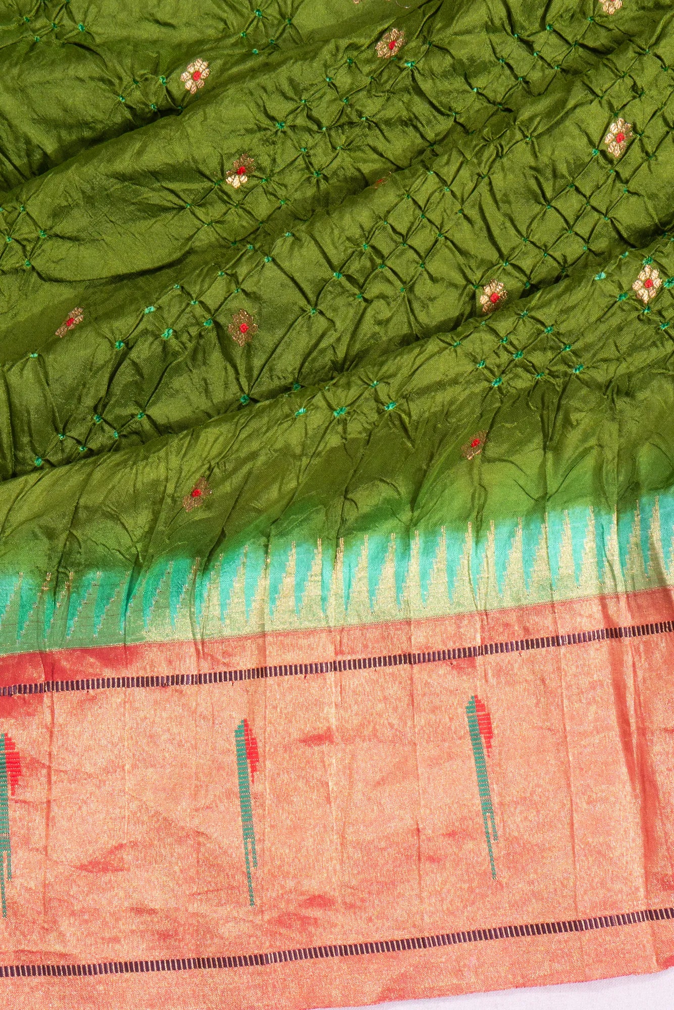 Muniya Silk X Bandhani And Butta Green Saree With Paithani Inspired Single Muniya Border