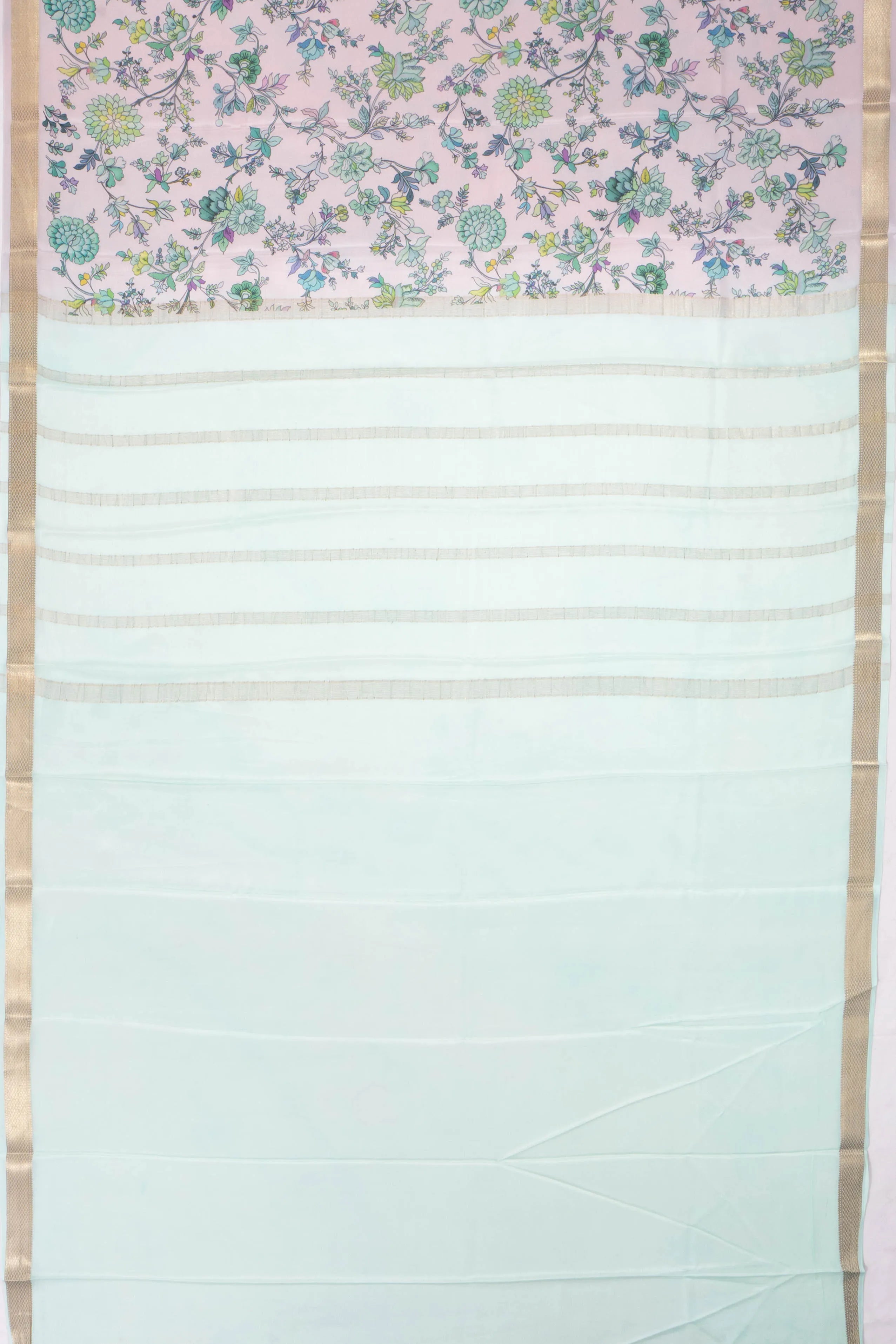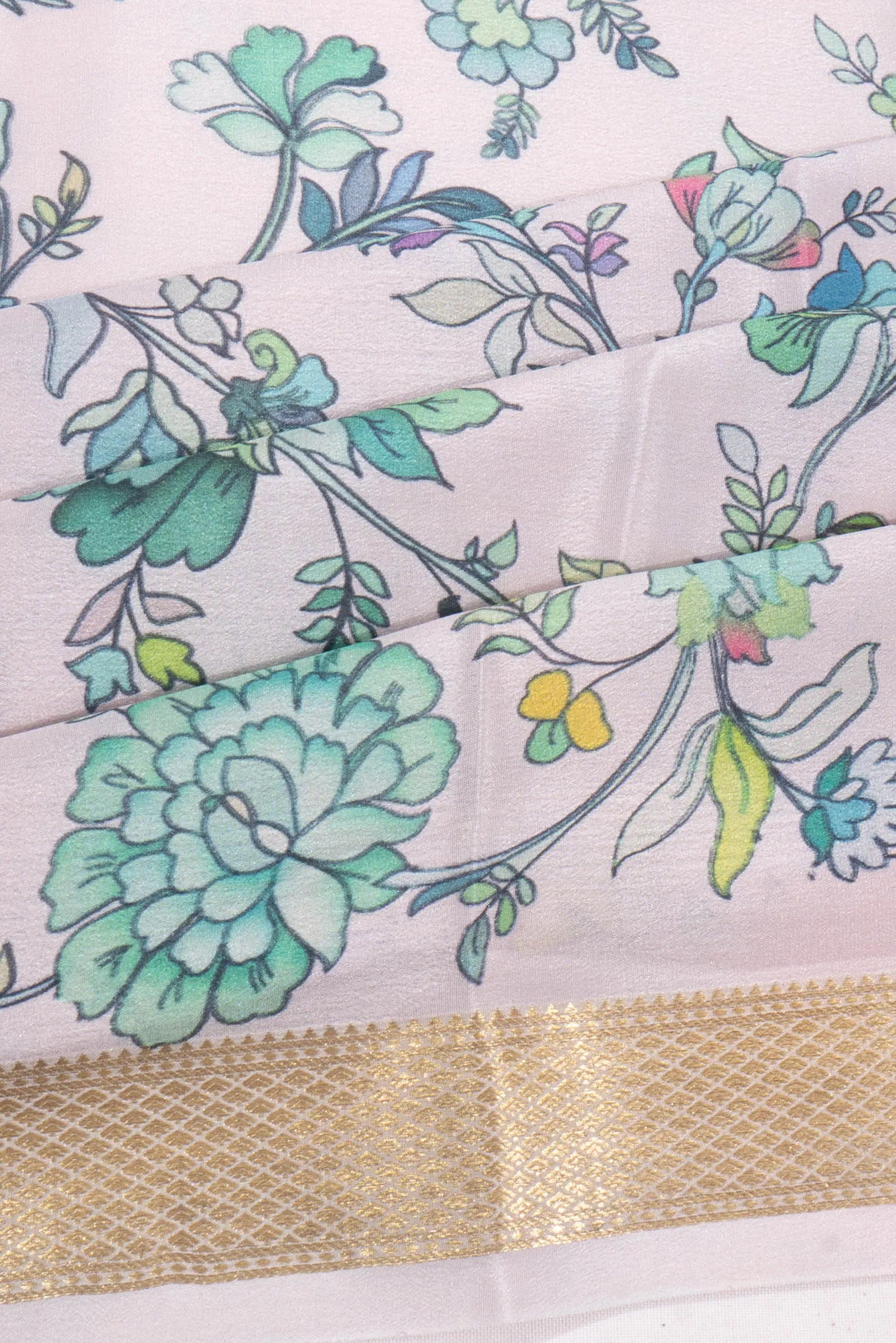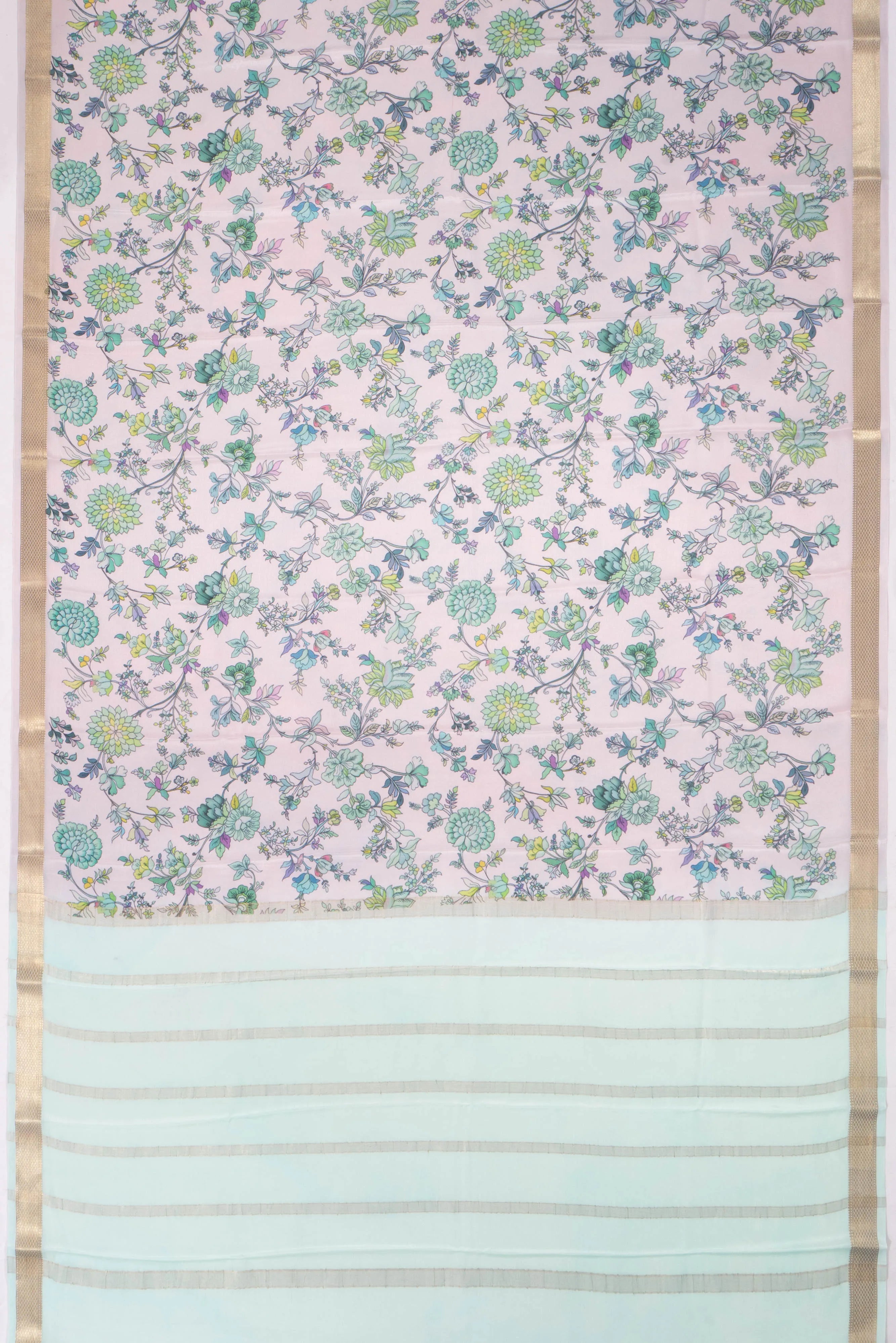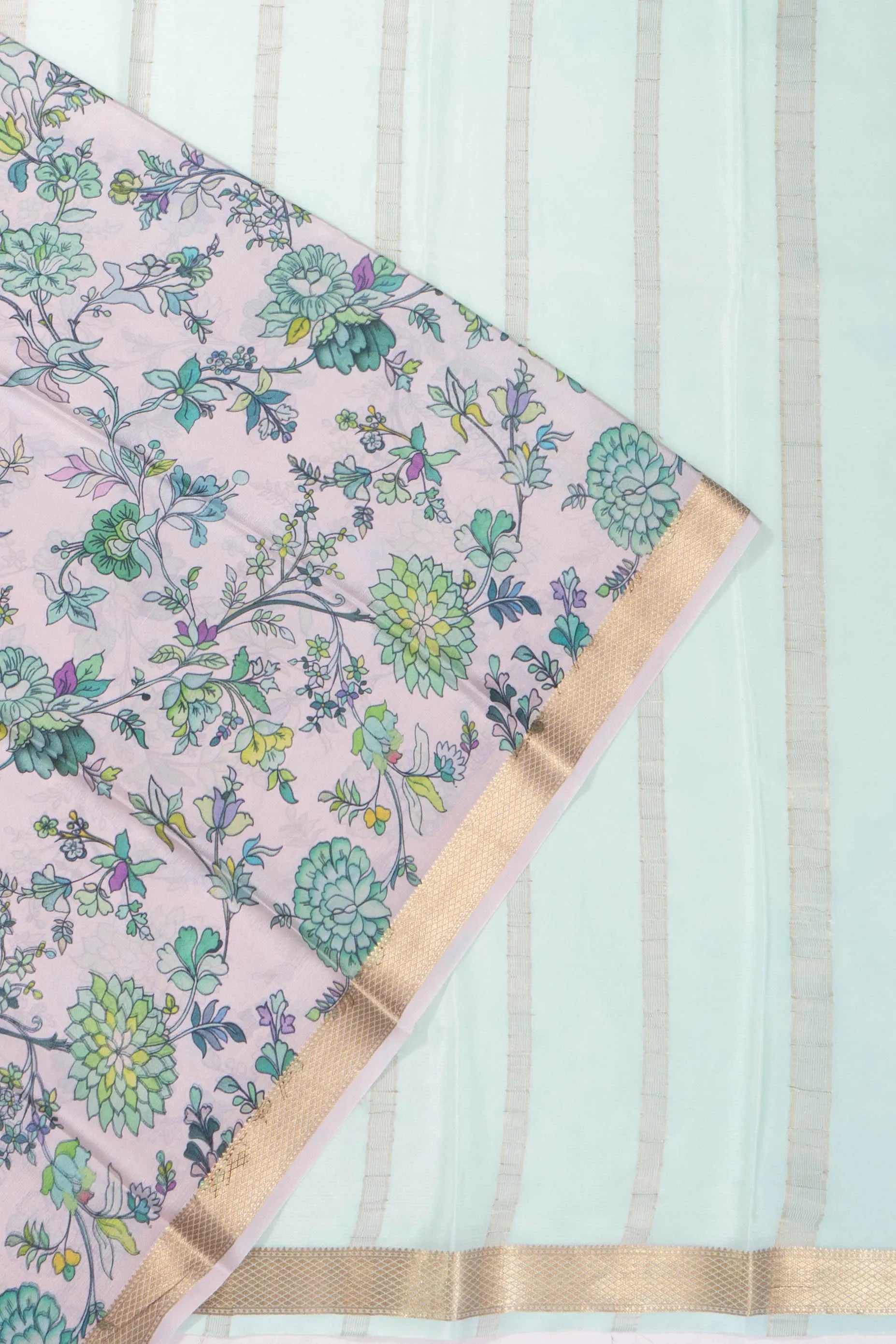 Mysore Silk Floral Printed Pastel Lavender Saree
