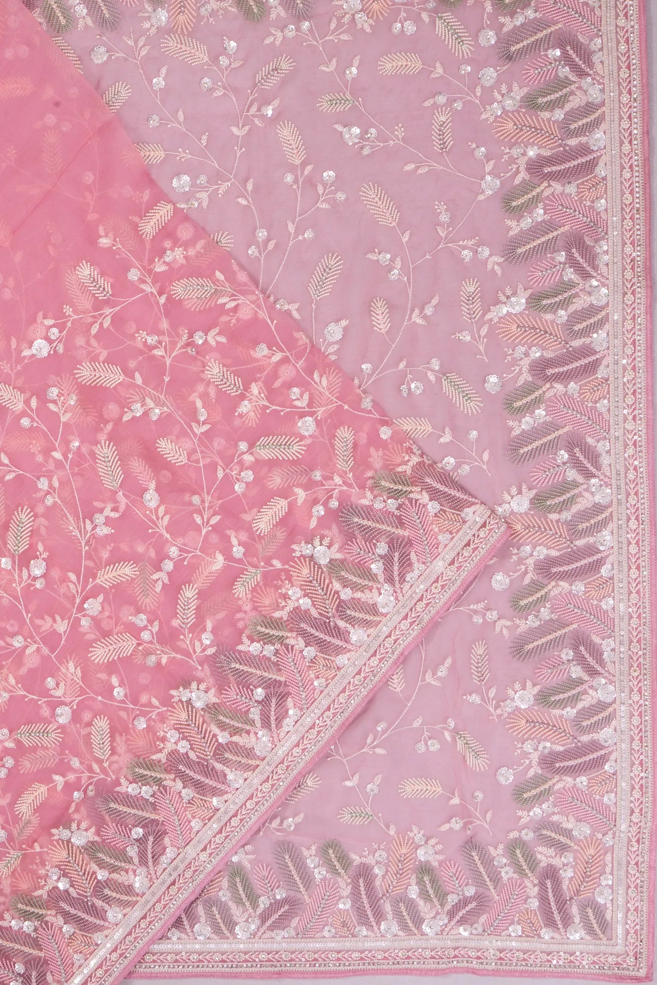 Organza All Over Embroidery Jaal Baby Pink Saree